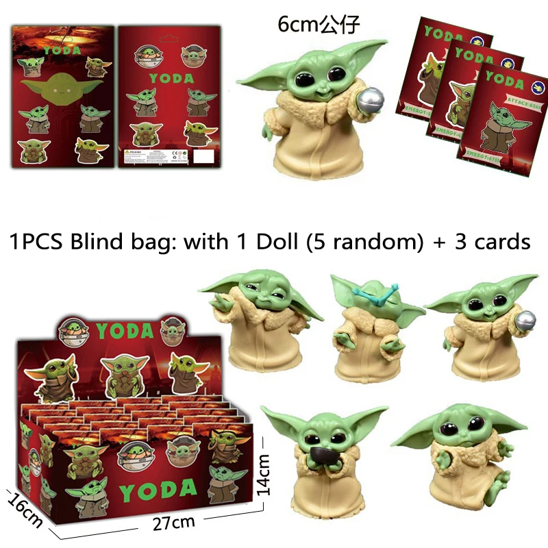 Звездные войны Детские йода Аниме Фигурка ребенок йода случайный сюрприз Слепой Мешок коллекция прекрасные модели игрушки подарок на день рождения. Размер: 6 см Случайный сюрприз слепой мешок: 1 кукла (5 случайных) + 3 карты