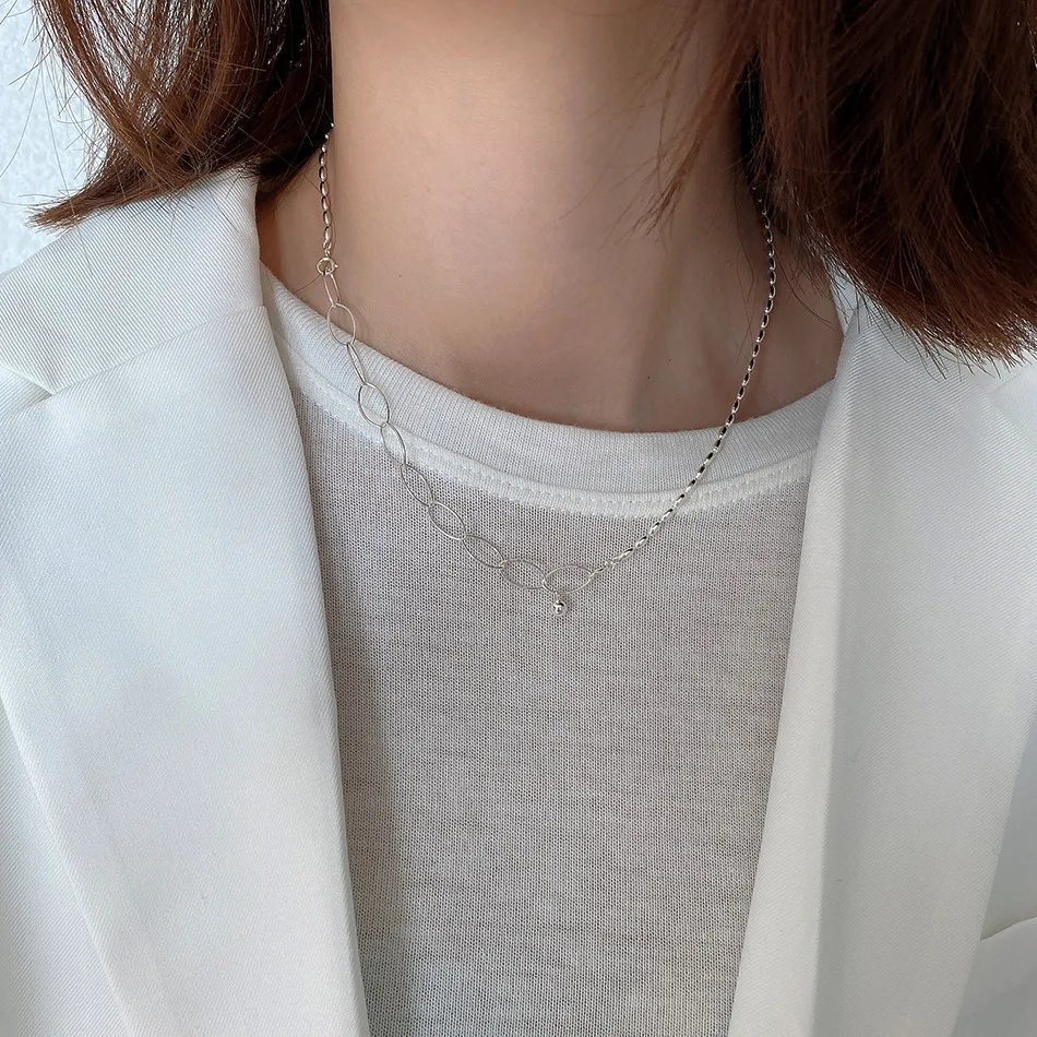 925 стерлингового серебра Овальный шарик на короткой цепочке ожерелье леди модное Ювелирное Украшение на день рождения Настоящее серебро 925 колье для девочек