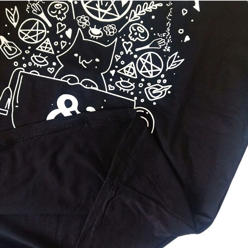 Футболка женская с графическим принтом, черный топ в стиле гранж, волшебный кот, ведьма, поклонение дьяволу, одежда в готическом стиле для девушек, Y2k