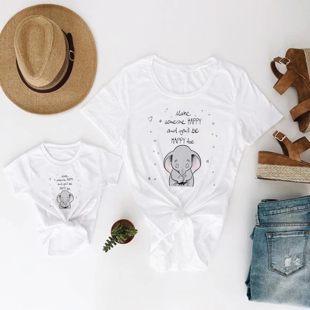 Детская футболка для девочек, мальчиков, братьев и сестер, диснеевские слон Дамбо луна, Мультяшные топы унисекс для взрослых, семейная Одинаковая одежда