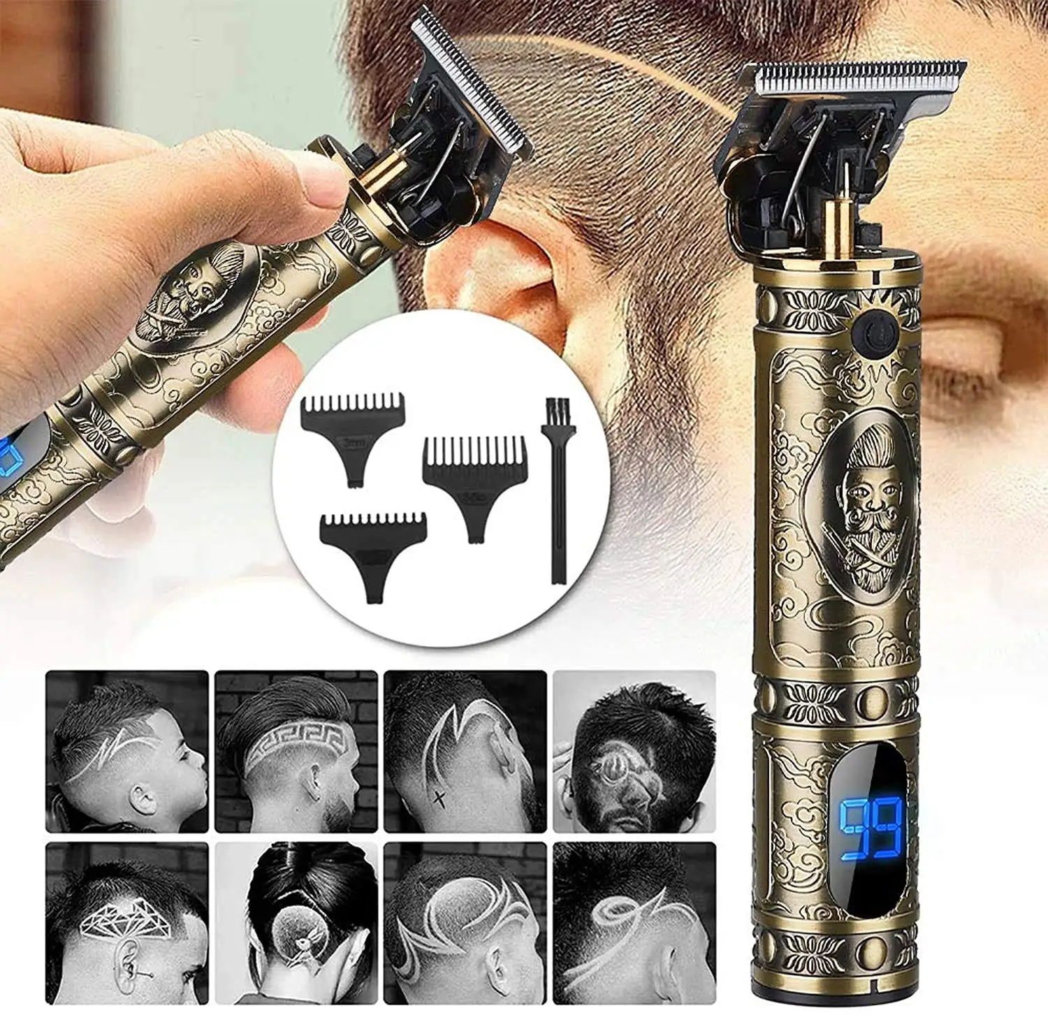 Триммер для стрижки волос мужской, Беспроводная Машинка с ЖК-дисплеем, зарядка от USB, инструмент для стрижки волос