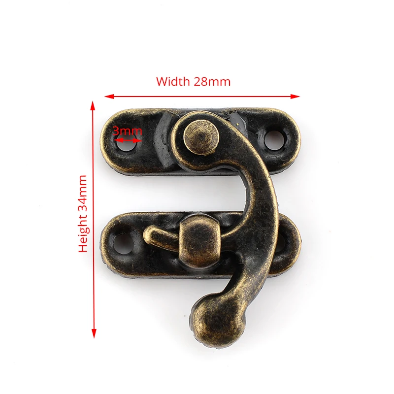 12 шт. 34x28 мм старинный Бронзовый железный замок с застежкой-крючком для мини-ювелирных деревянных коробок с винтами мебельная фурнитура