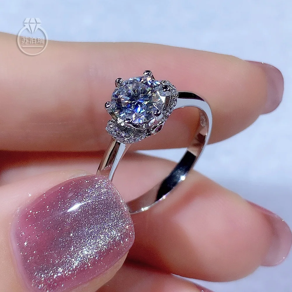 Кольца с муассанитом 6,5 мм, 1 карат, для женщин, подарок подруге, Ухаживание, серебро 925 пробы, кольца с бриллиантами, не регулируемые