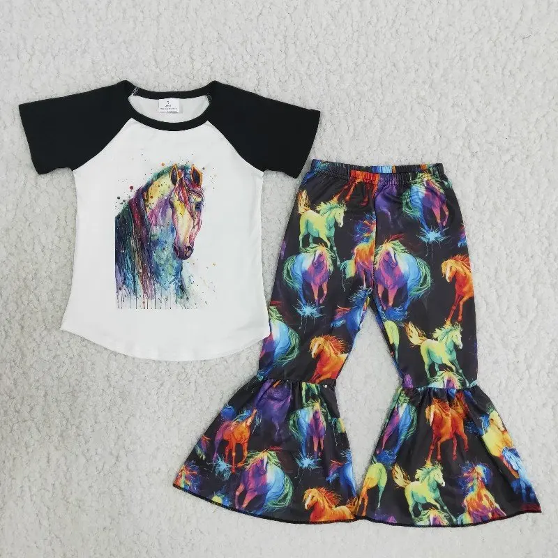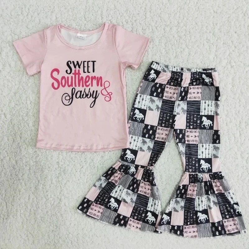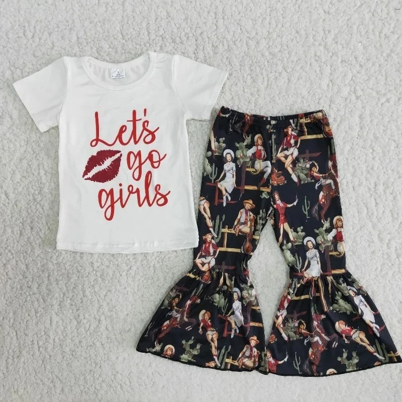 Рубашка с коротким рукавом и брюки с колокольчиками для девочек