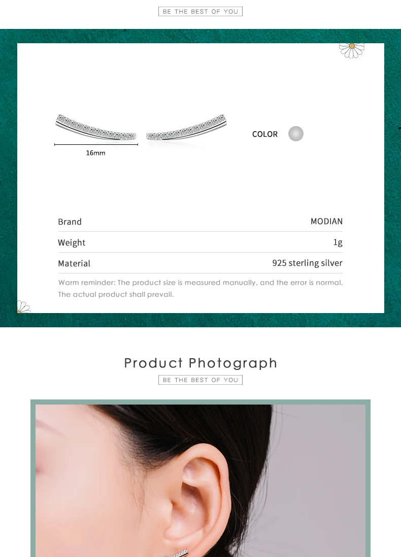Modian 925 стерлингового серебра сверкающий круг, серьги со шпилько...