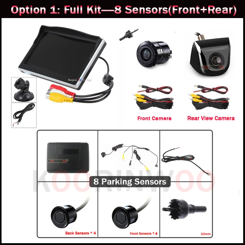 Парктроник Koorinwoo с динамической траекторией, Автомобильный датчик парковки с 8 окошками, автомобильный ЖК-монитор, зуммер, камера заднего вида Jalousie