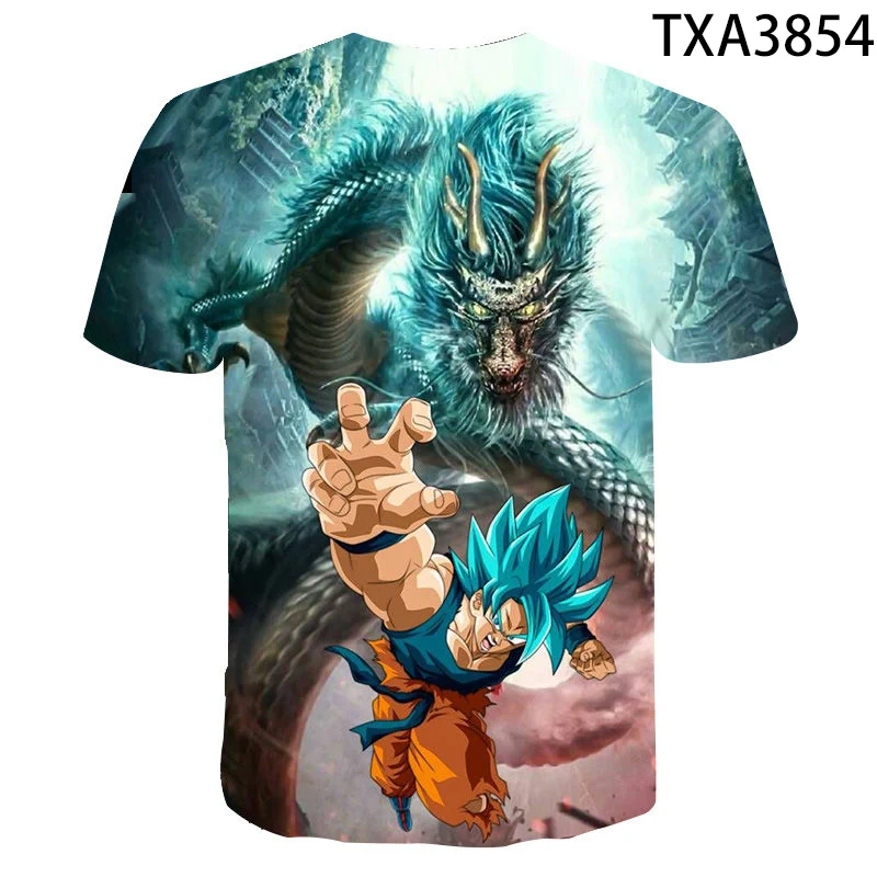 Новинка 2021, летняя футболка с мультяшным аниме драконом и 3D прин...