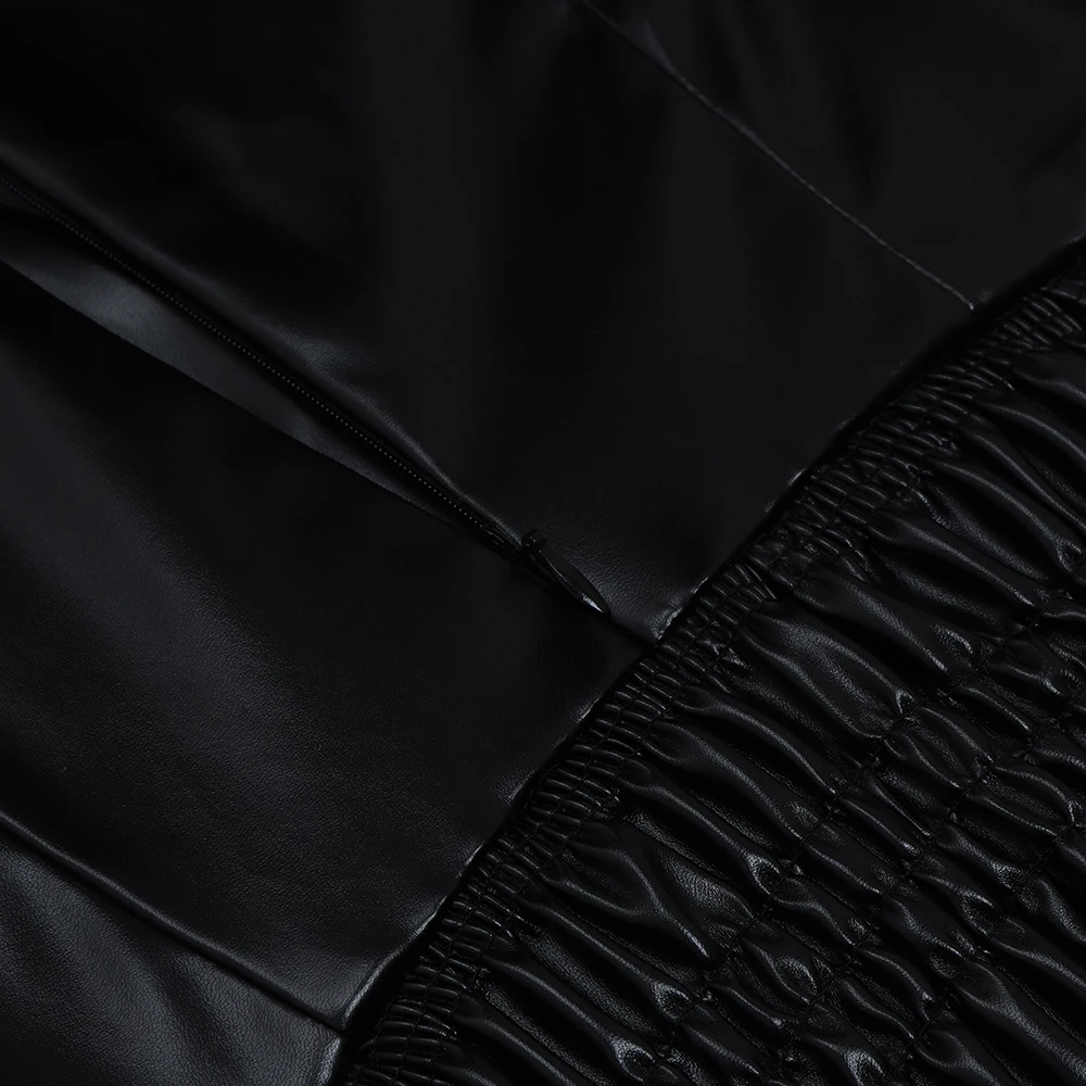 Черное женское платье из искусственной кожи, новинка 2021, модные весенне-осенние Клубные облегающие вечерние платья с длинным рукавом
