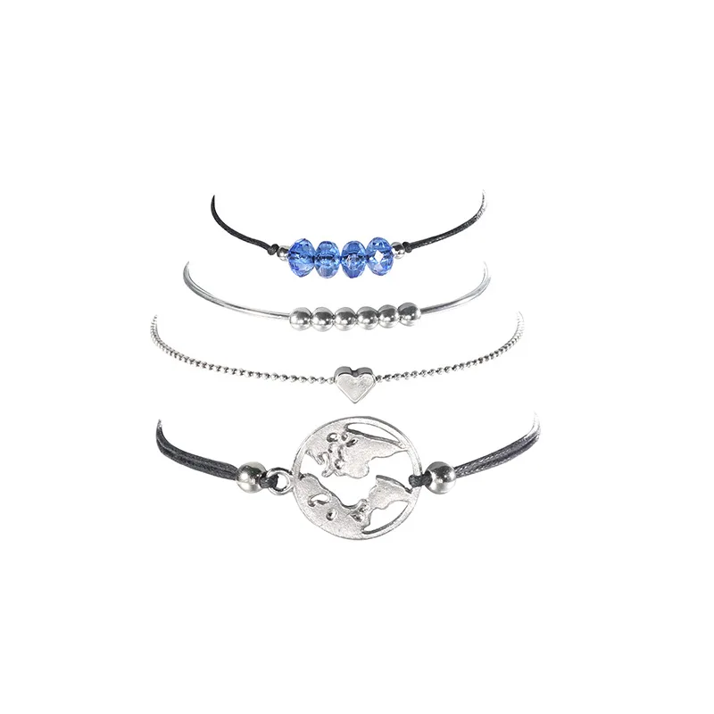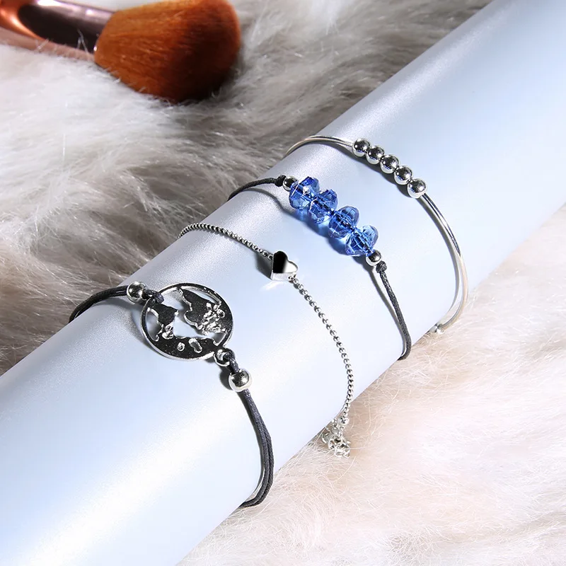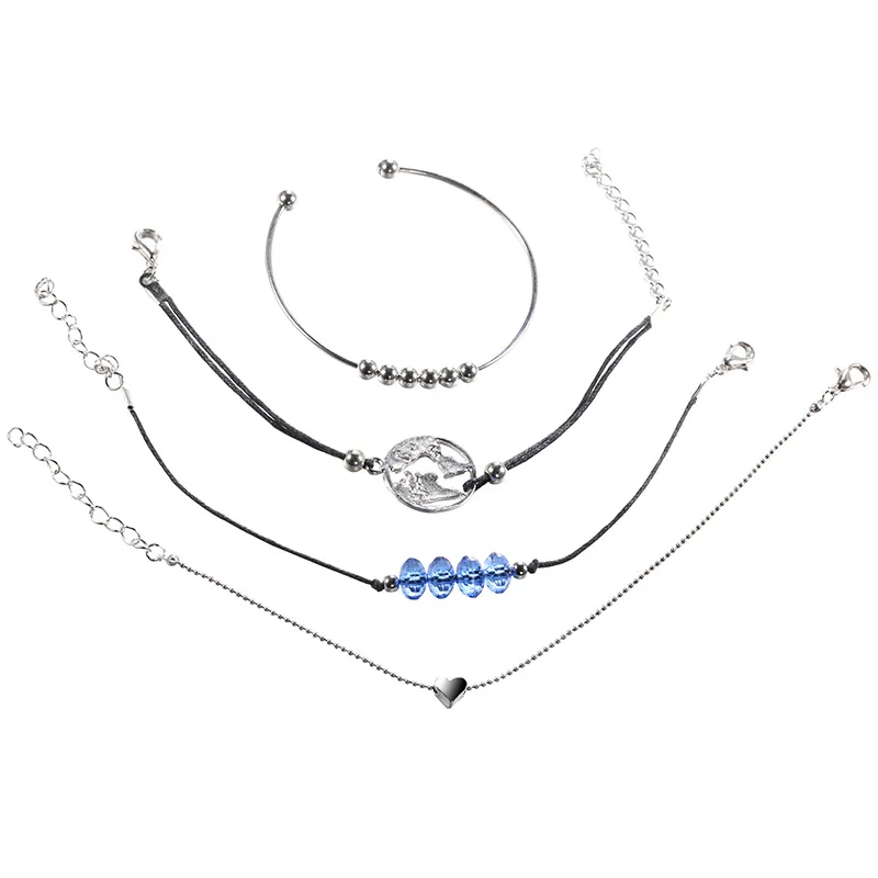 4 шт.компл. богемные браслеты в форме сердца Love Map для женщин ювелирные изделия в стиле бохо с кристаллами геометрические бусины браслет с подвесками