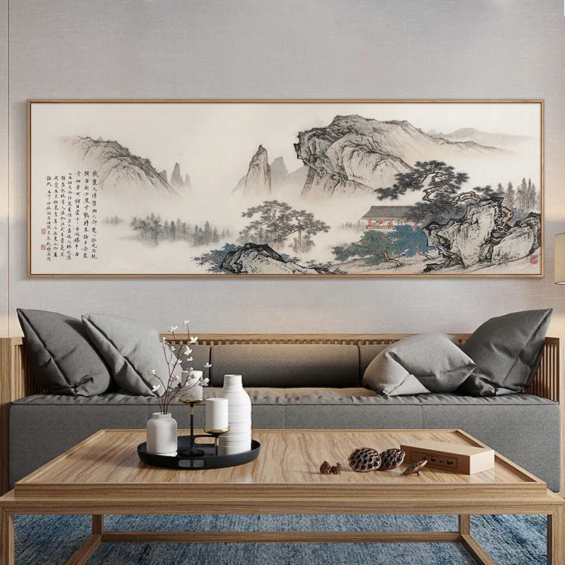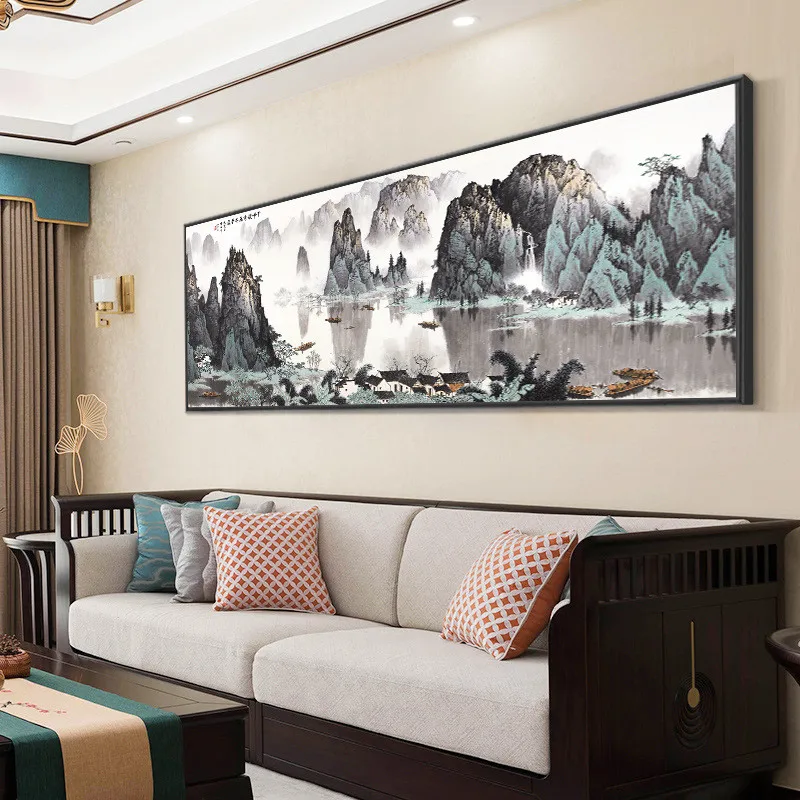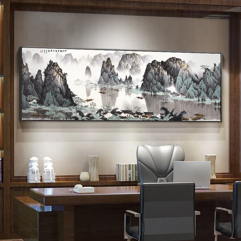 Настенная живопись, холст в традиционном китайском стиле, горы и реки, холст для офиса, дома, гостиной, Декор, постер, печатная картина