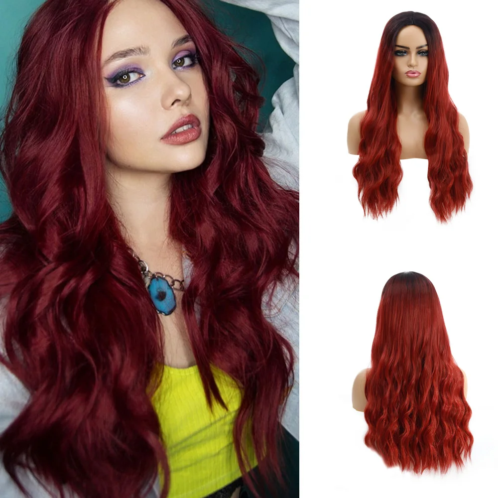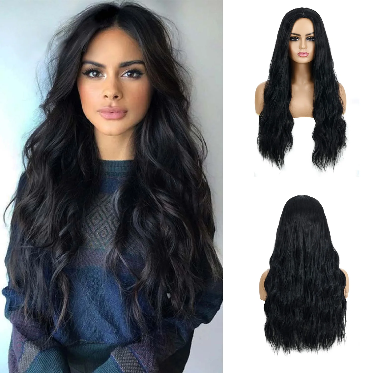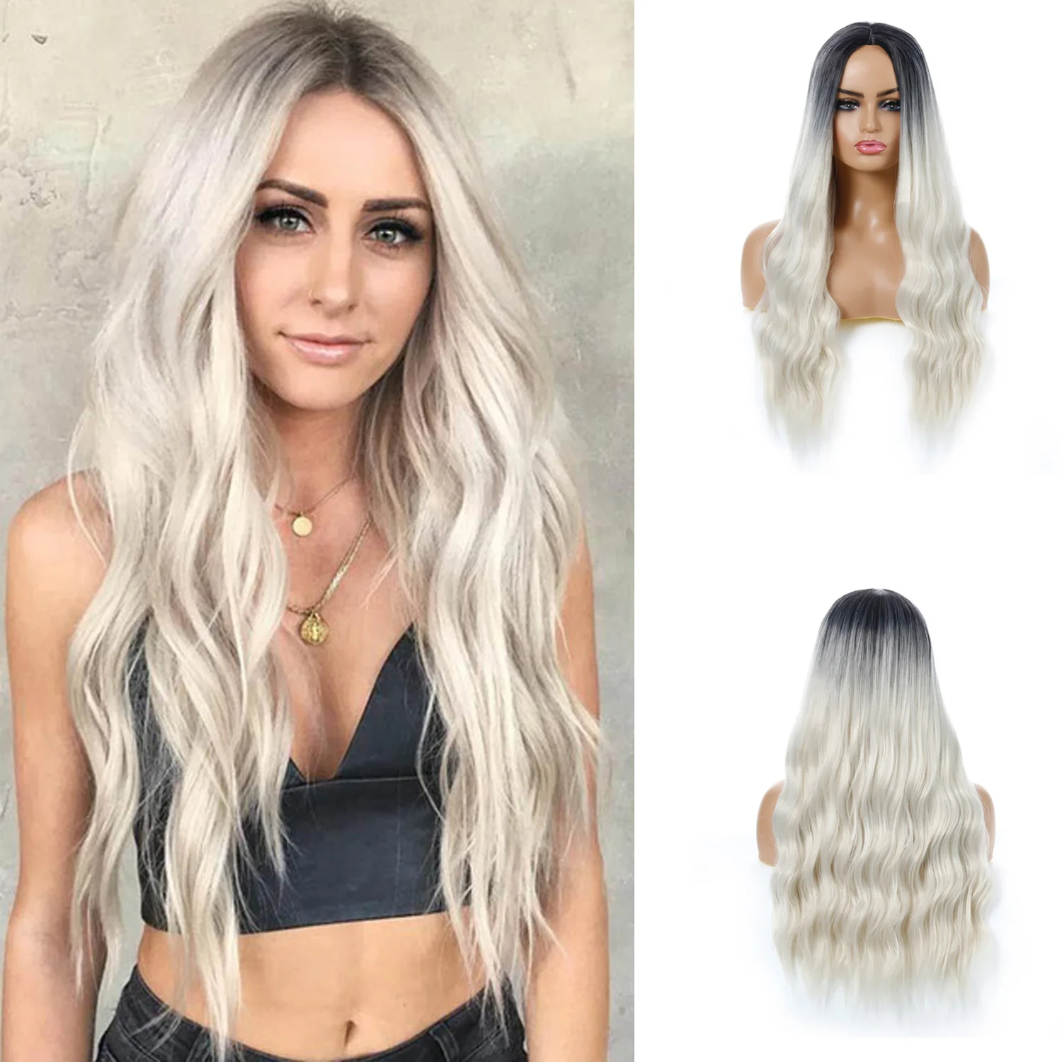 Парики для женщин, Синтетические длинные волнистые волосы, натуральные боковые волосы, термостойкие, для ежедневного использования, высокотемпературное волокно