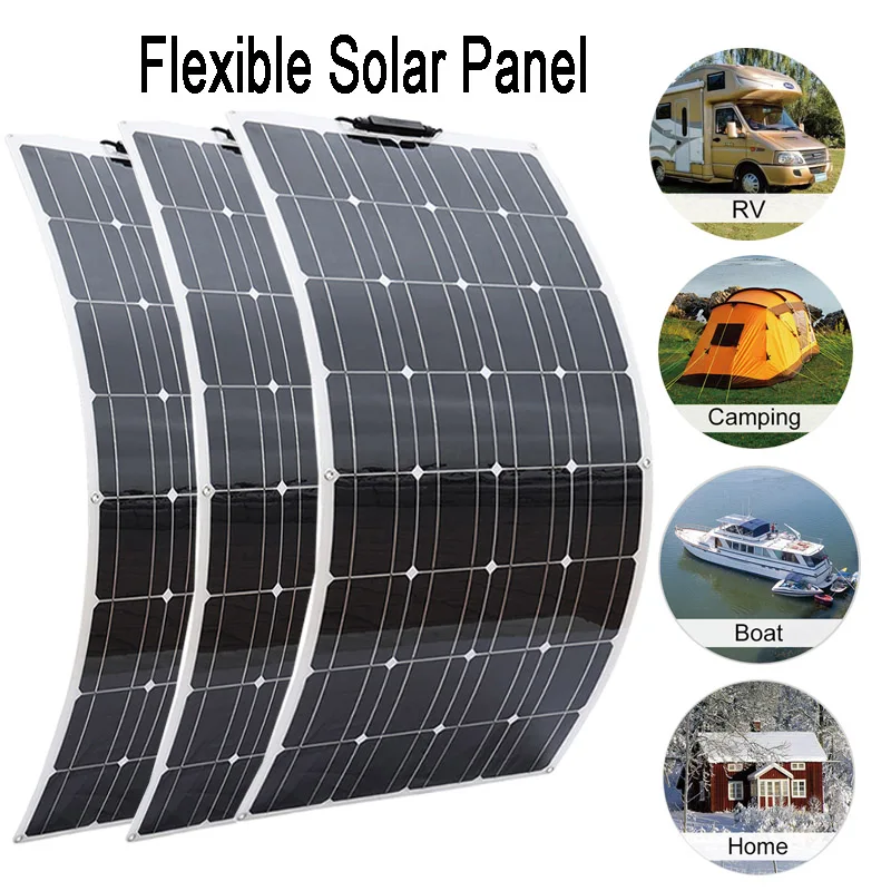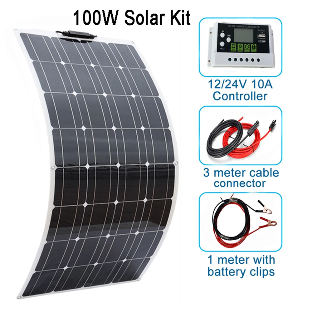 100 Вт 18 в 12 В гибкие солнечные панели с разъемами для 12 В аккумуляторных батарей для дома/кемпинга/автомобиля/лодки.