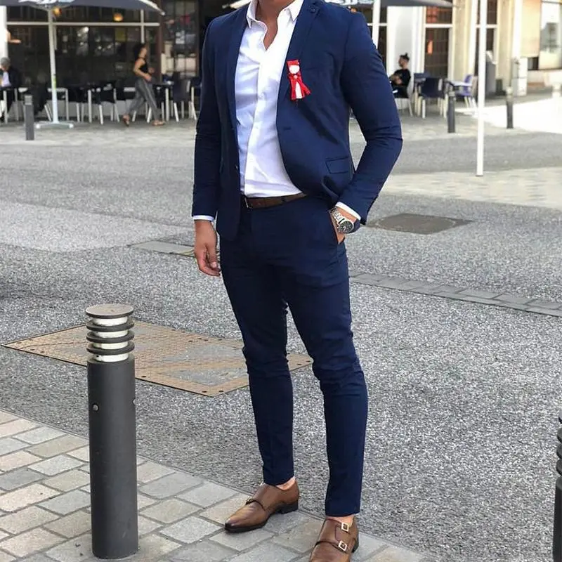 Мужской однобортный смокинговый костюм, Синий Облегающий костюм для...
