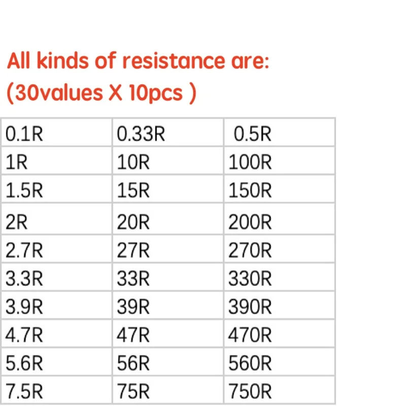 Комплект резисторов 300 шт. 1 Вт 5% 0,1 R - 750R 30 значений X 10 шт. комплект сопротивления углеродистой пленки 750-ом