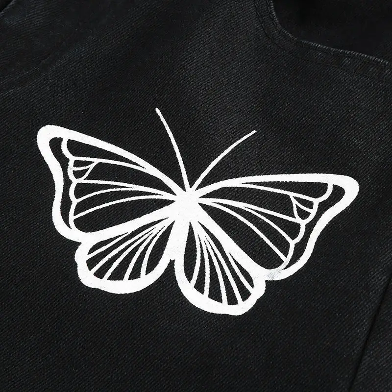 Черные женские джинсы с бабочкой свободного покроя для отдыха в Корейском стиле шикарная модная крутая уличная одежда BF популярная женская нижняя одежда Ulzzang Ins