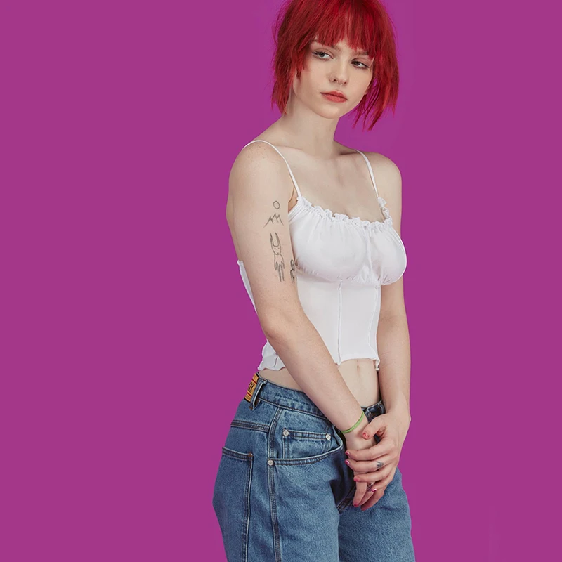 Женская майка без рукавов, с оборками, Лето Топ на бретельках
