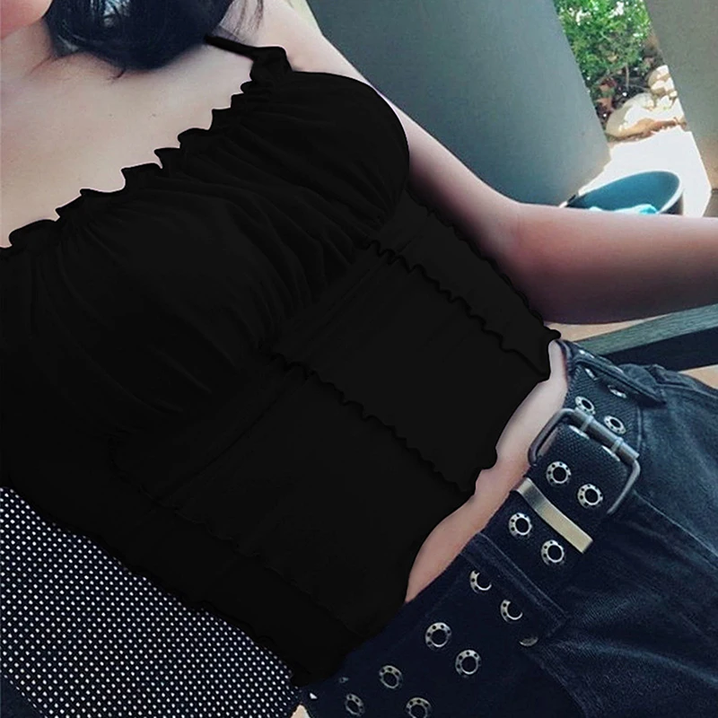 Женский летний пикантный топ с оборками, топ без рукавов на бретеля...