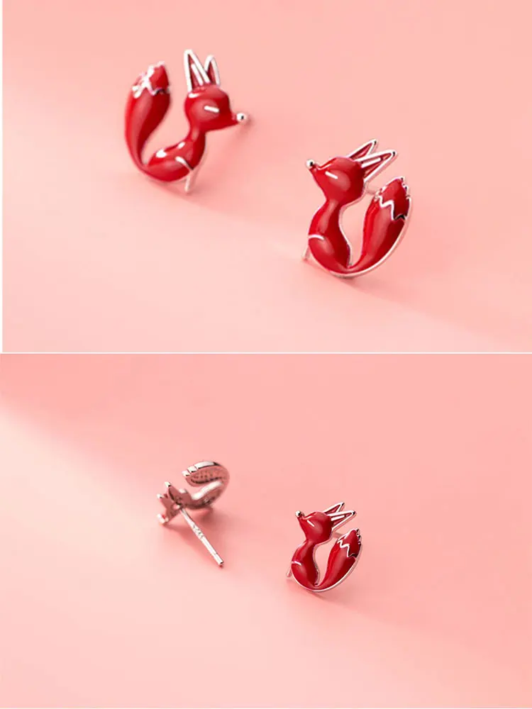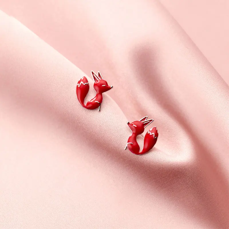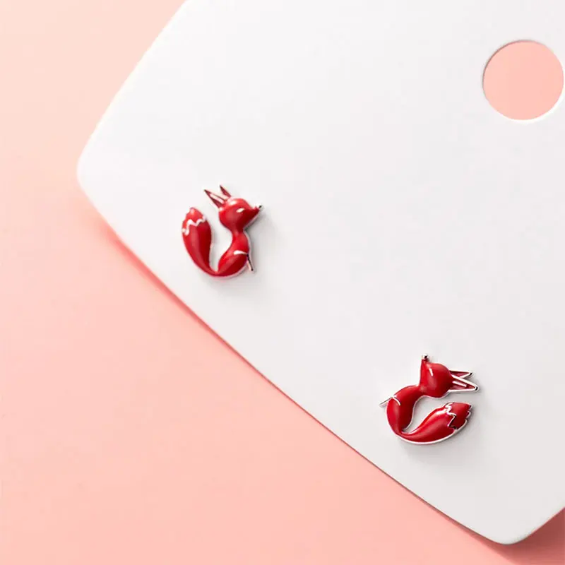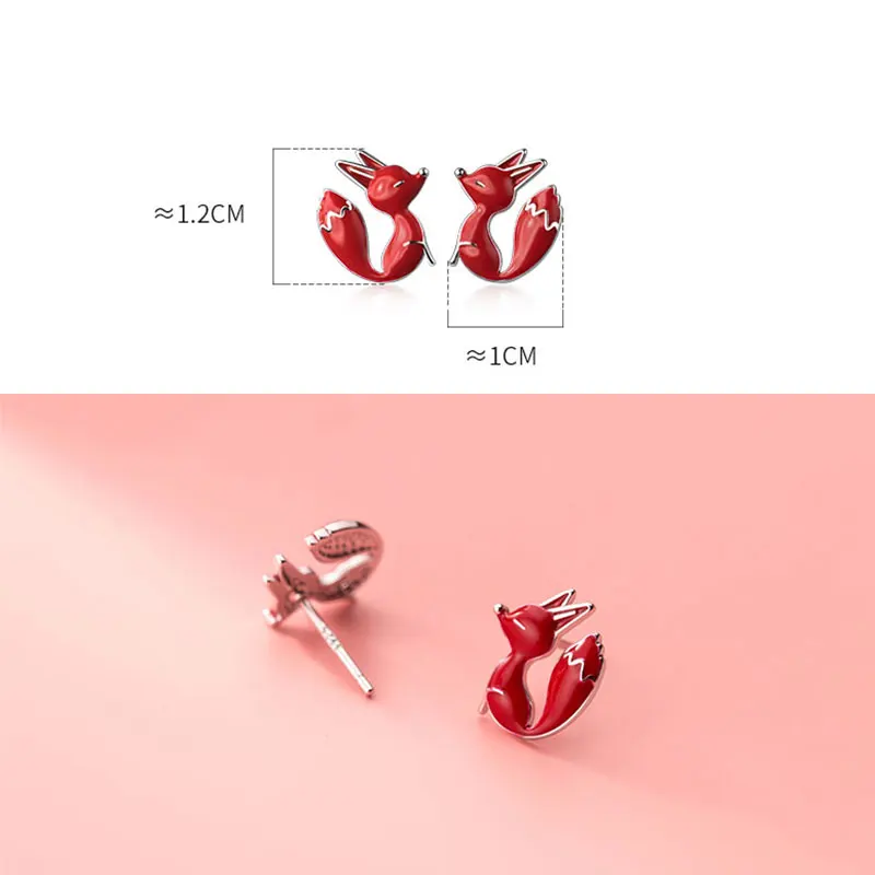 Серьги-гвоздики AIFENAO из стерлингового серебра 925 пробы с эмалью в виде животных и красной лисы для женщин и девушек, Ювелирное Украшение для творчества, подарок на день рождения