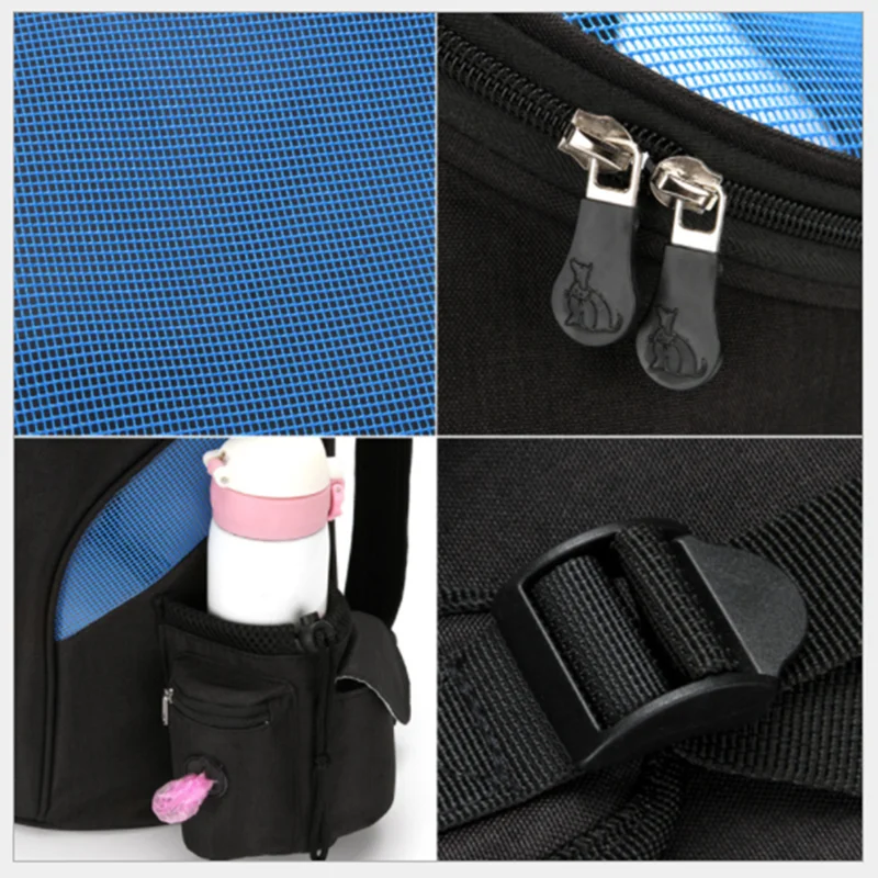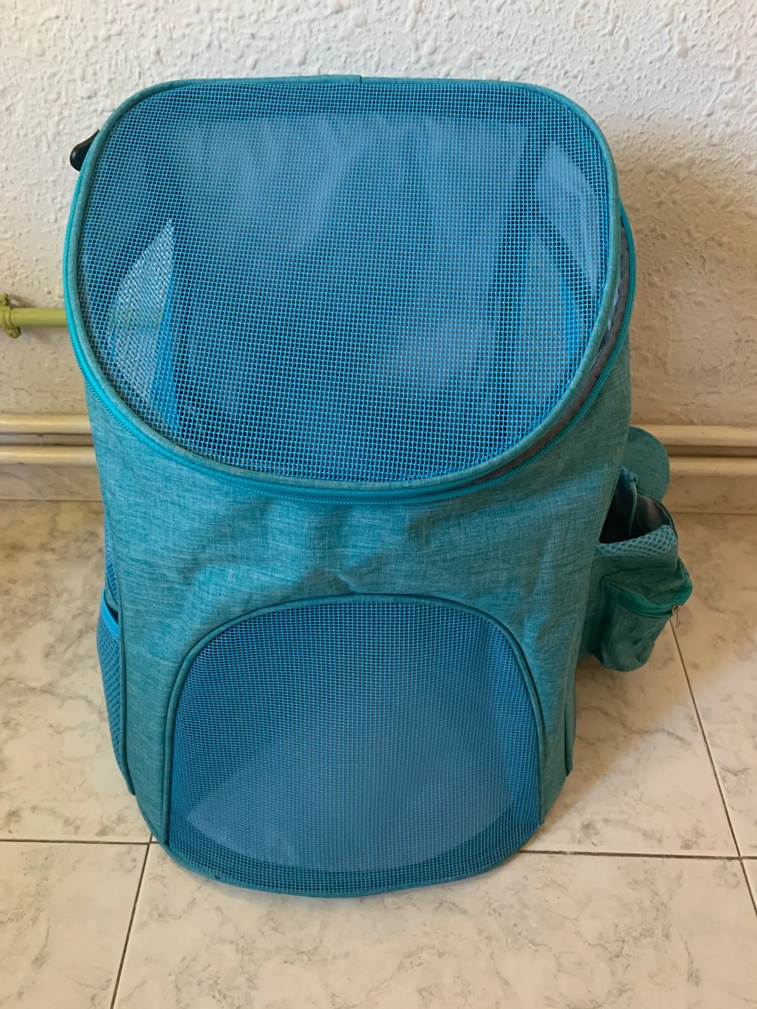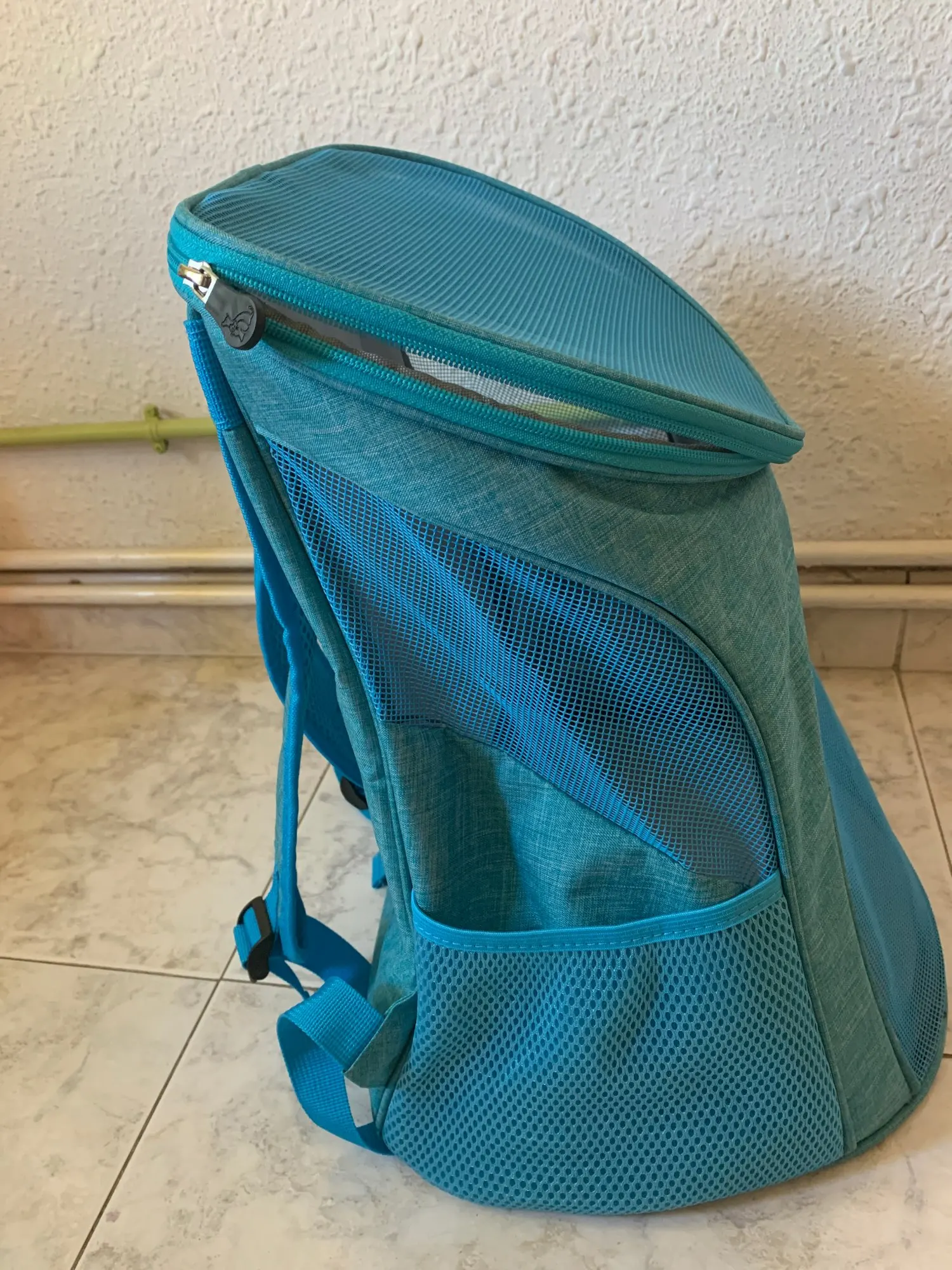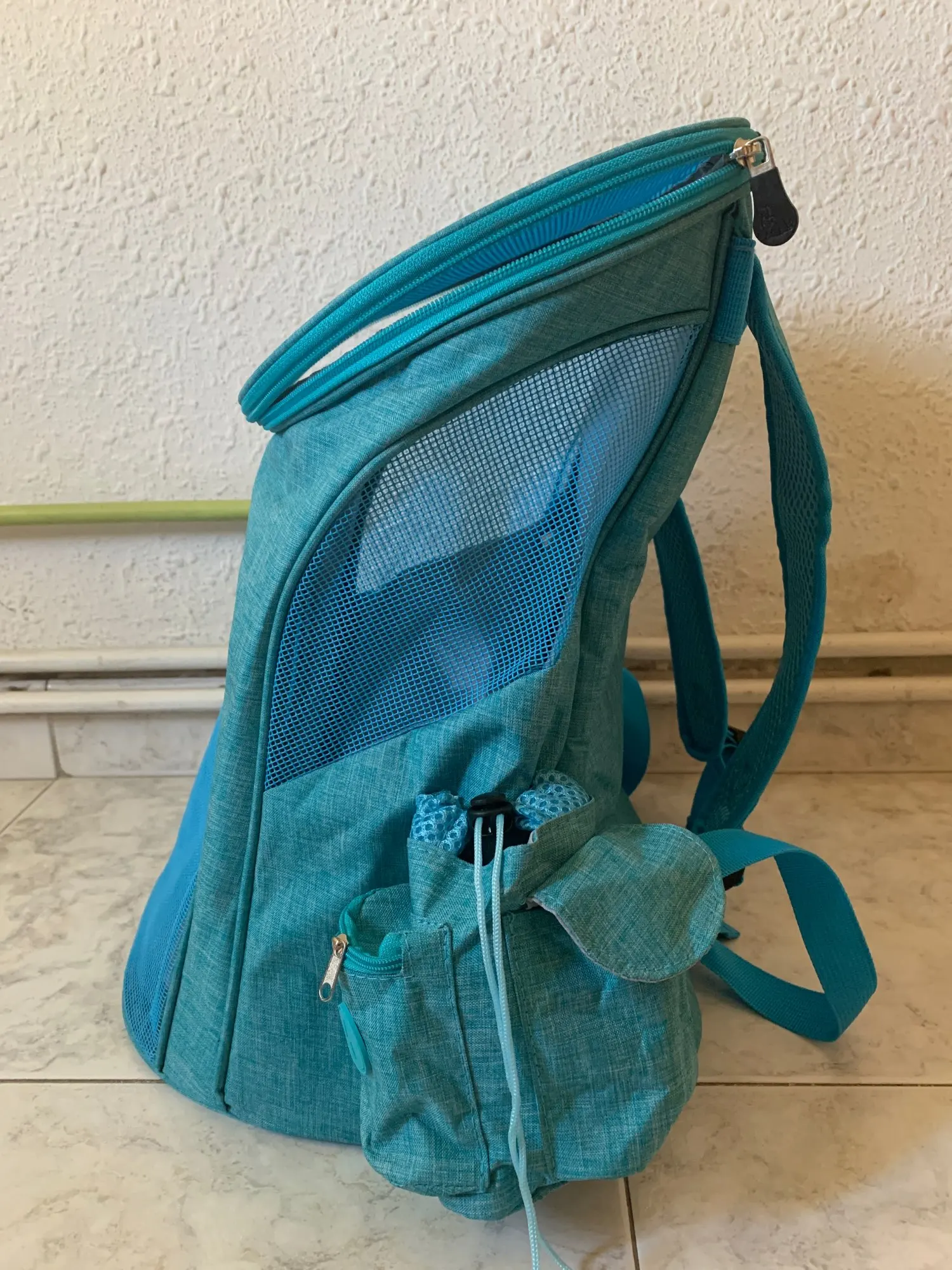 Очень удобный рюкзак. Материал и Сетка крепкие. Замки качественные. Собачка поняла что в рюкзаке её понесут на улицу и спокойно залазит в него. Через сетку ей хорошо видно, и дышать легко. Удобно что есть кармашки для бутылочки и ещё что то можно положить.
