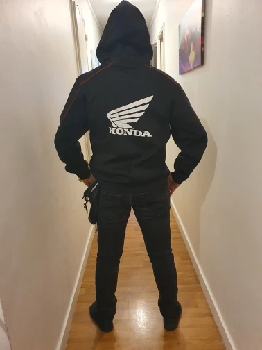 Довольно хороший принт и ткань плотнее, чем ожидалось. Стильная куртка. К сожалению, передняя молния была черной, а не красной, но остальное было так, как ожидалось. Я 1,78 метров в высоту и красивая стройная женщина. Купил Размер s, и он очень хорошо сидит.