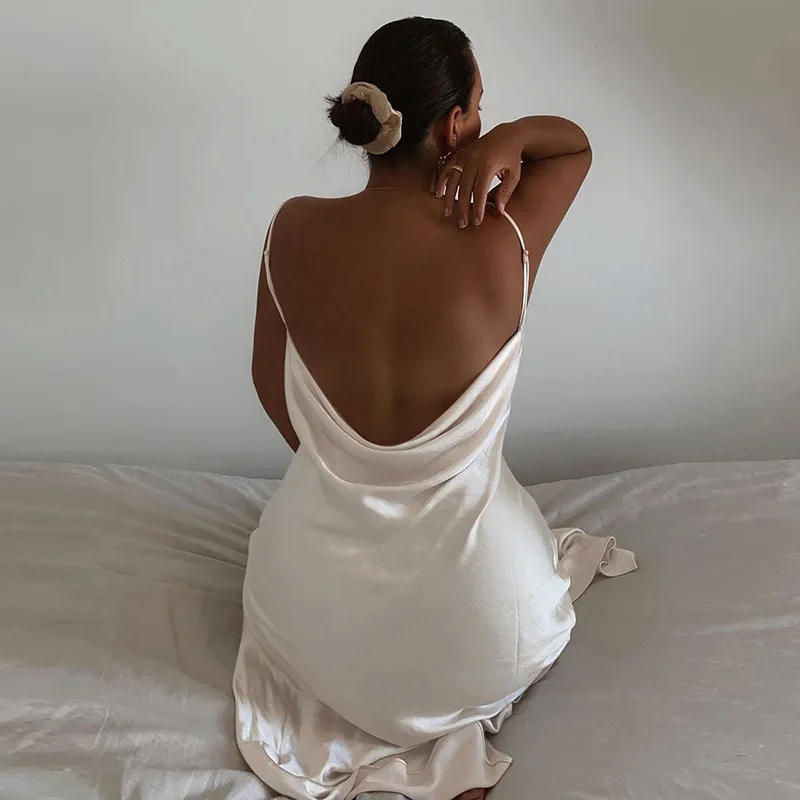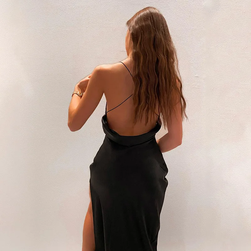 Женское длинное платье на бретелях-спагетти, Элегантное летнее платье без рукавов с открытой спиной, сексуальное пляжное платье
