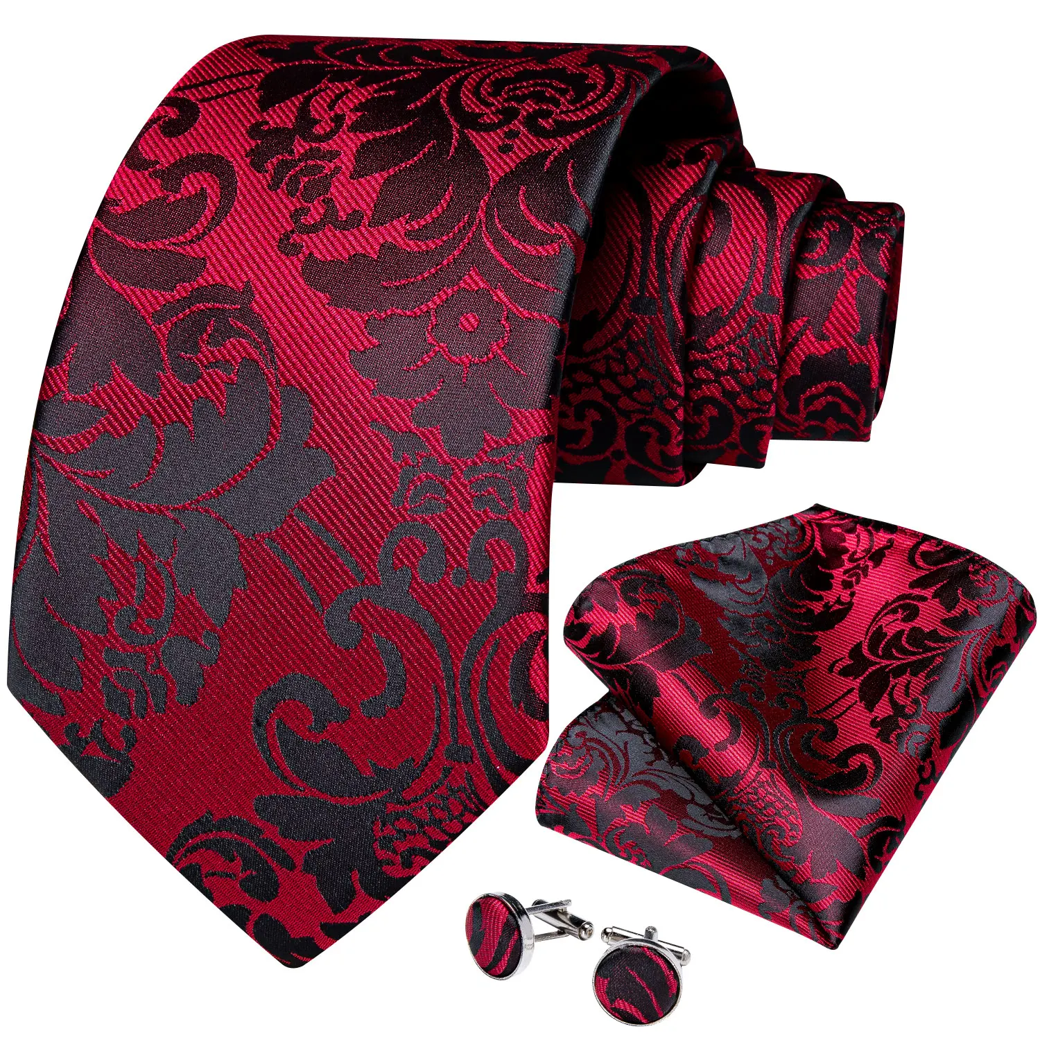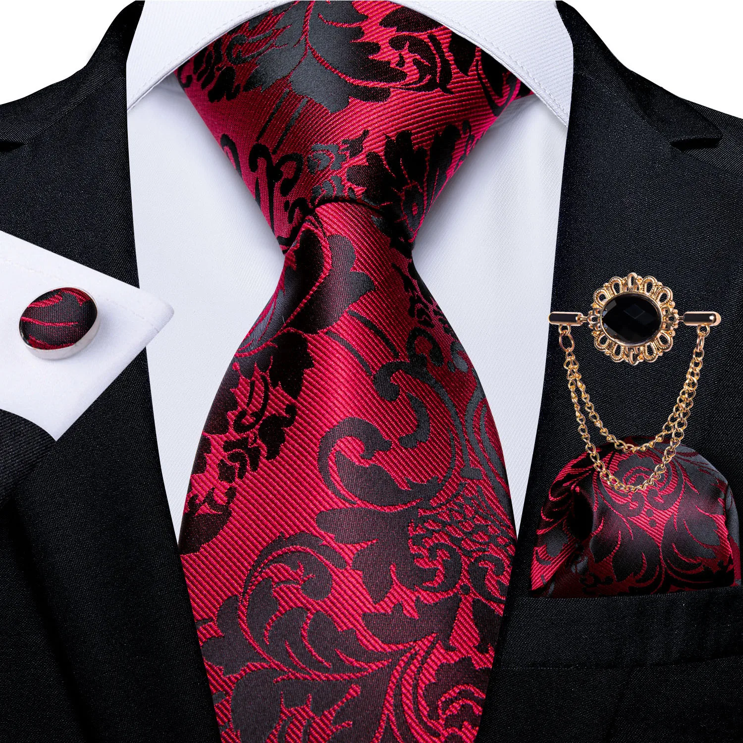 Новая мода красный цветочный Пейсли Мужчины шеи галстук носовой платок Брошь цепочка 8 см ширина Шелковый жаккард Тканый бизнес Свадебный галстук DiBanGu