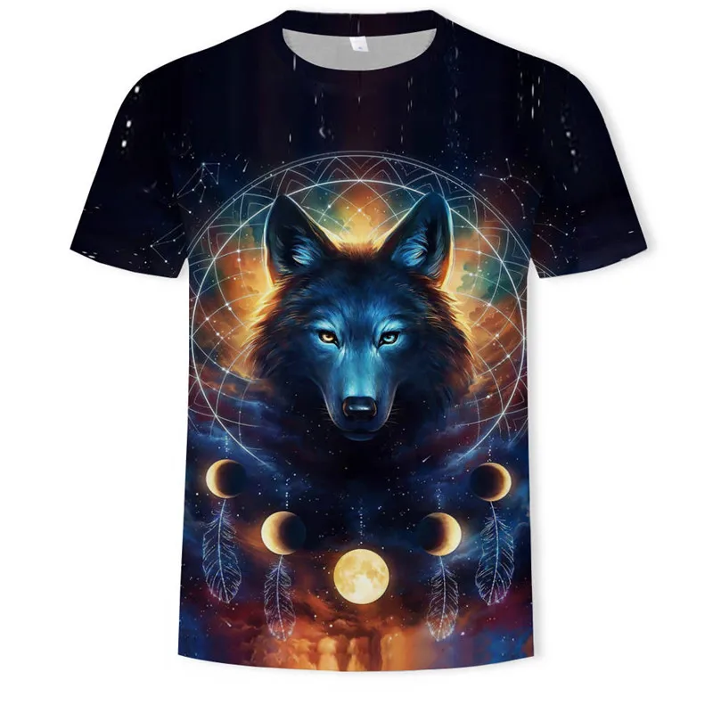 Лето 2020, новинка, забавная 3d футболка, летние хипстерские футболки с коротким рукавом, топы с рисунком волка в юбке с коротким рукавом