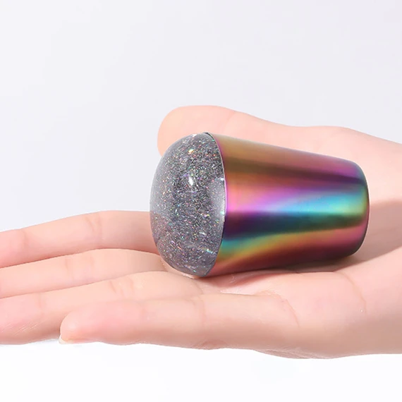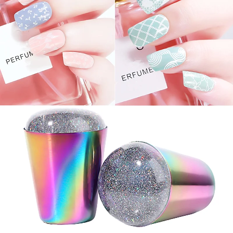 Штамп для ногтей с радужной ручкой, блестящая голографическая голов...
