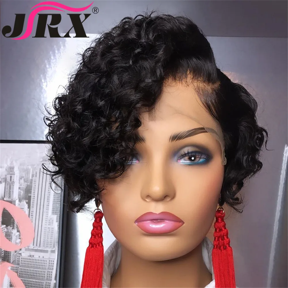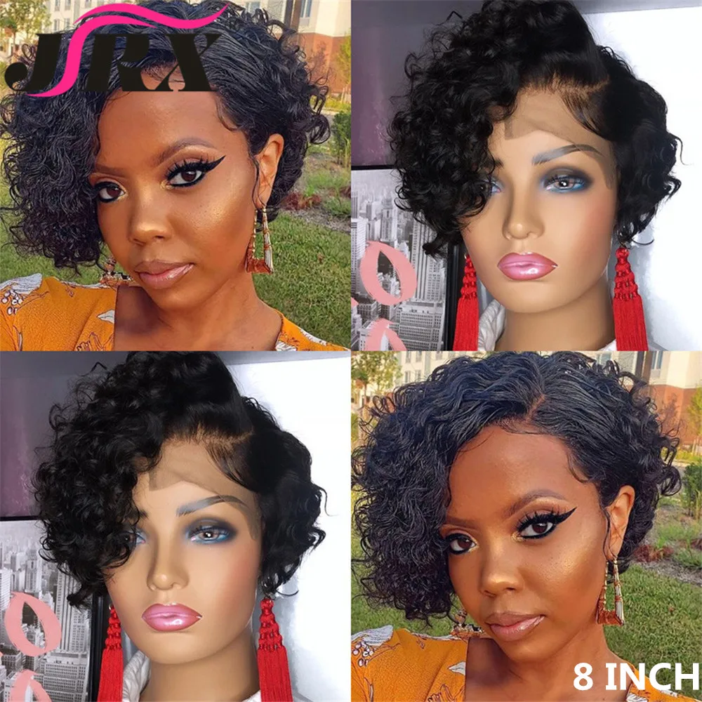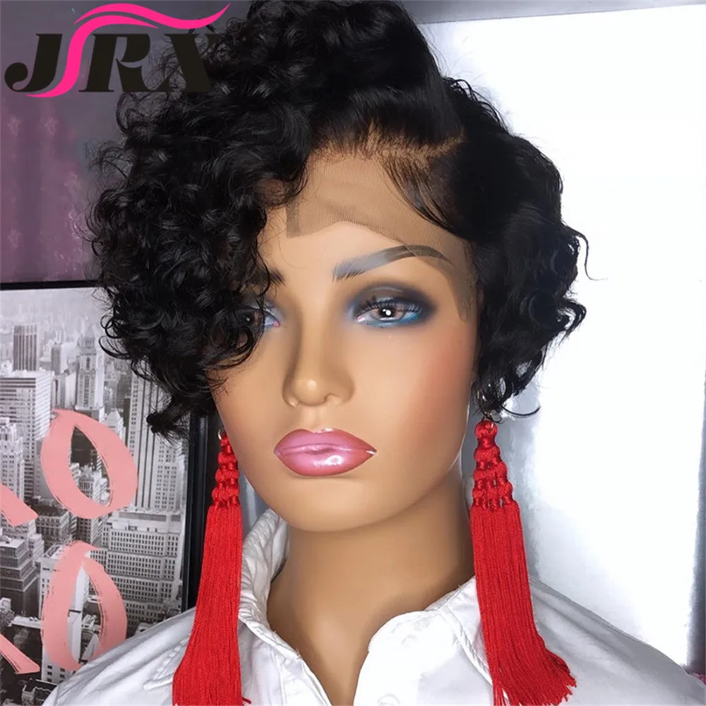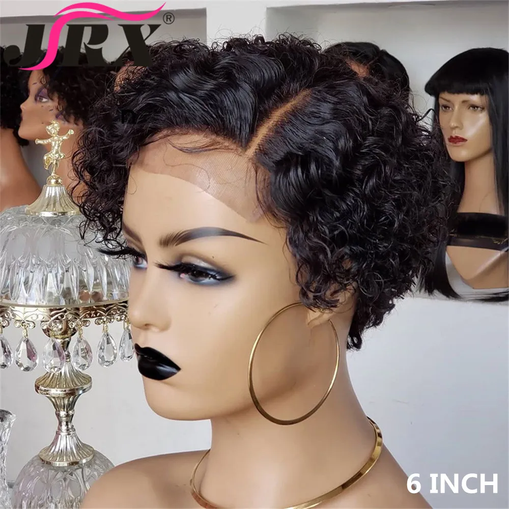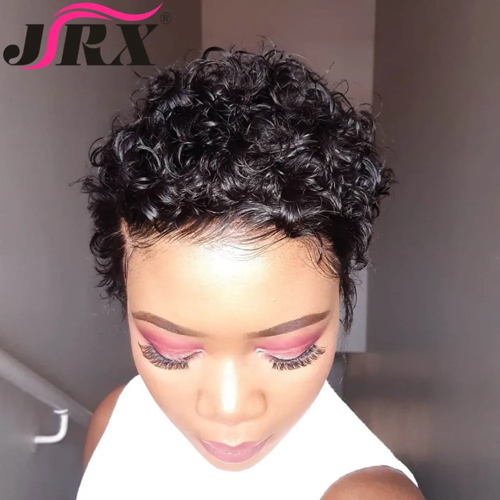 Парик с стрижкой Пикси, Короткие вьющиеся парики из натуральных волос T-образной формы для женщин, бразильские неповрежденные кудрявые короткие парики из натуральных волос, предварительно выщипанные