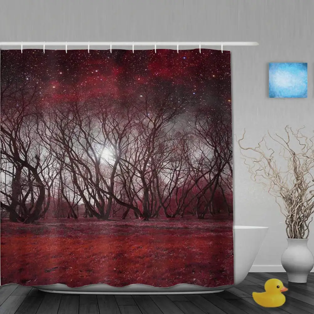 Занавеска для душа, водонепроницаемая Штора для ванной из полиэстера, с изображением Вселенной, Луны, фэнтези, Красного леса под космосом, звездного неба, ночного неба