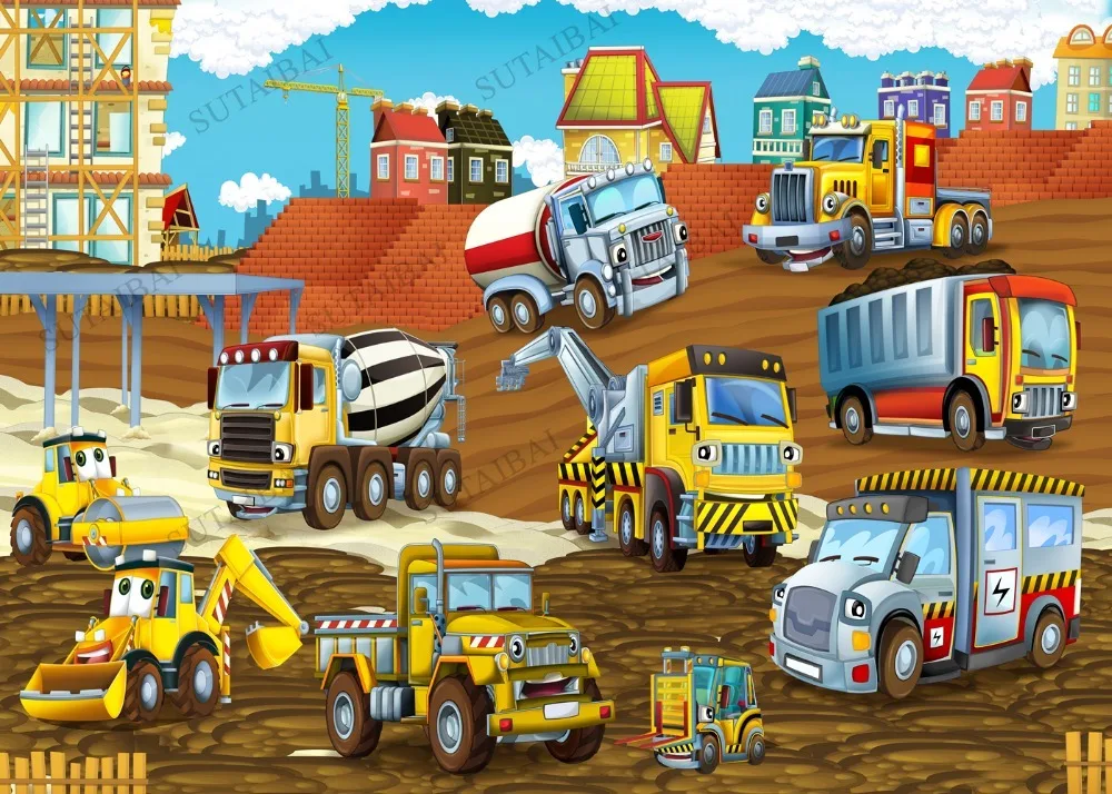 Фон для фотосъемвечерние со строительным самосвалом для мальчиков и малышей Декор-баннер