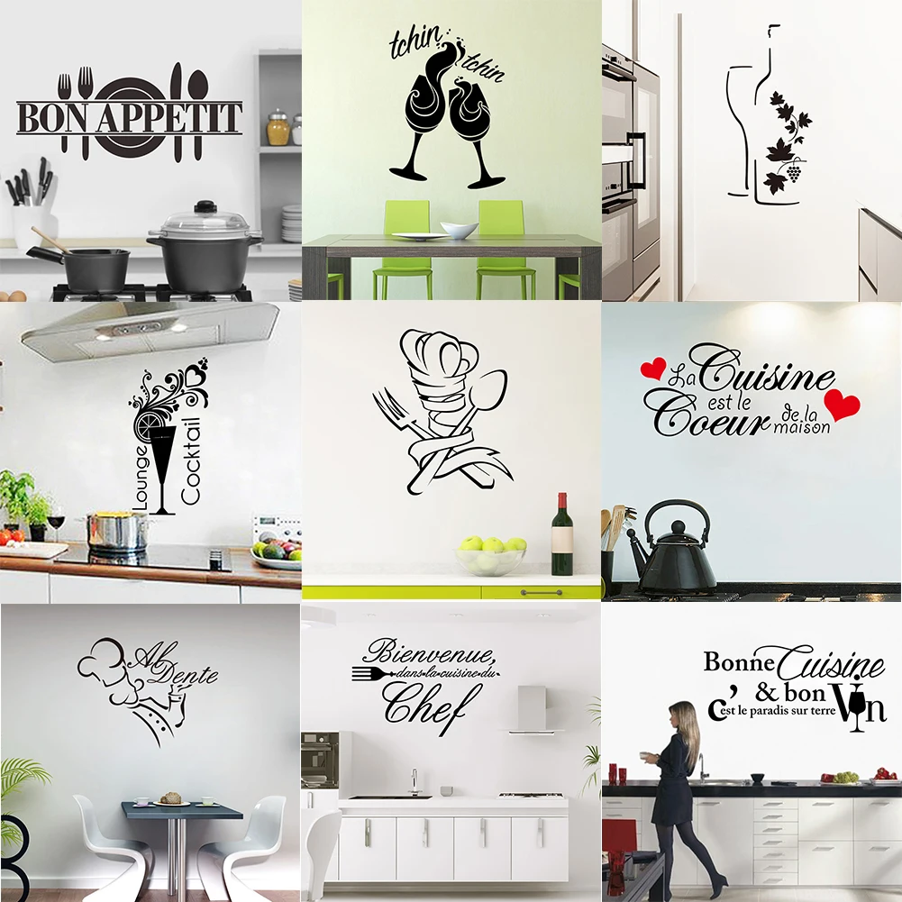 Настенные наклейки французский Бон аппетит Бонна кухня коктейль виниловые настенные наклейки Добро пожаловать шеф-повар сердце росписи художественные обои для кухни