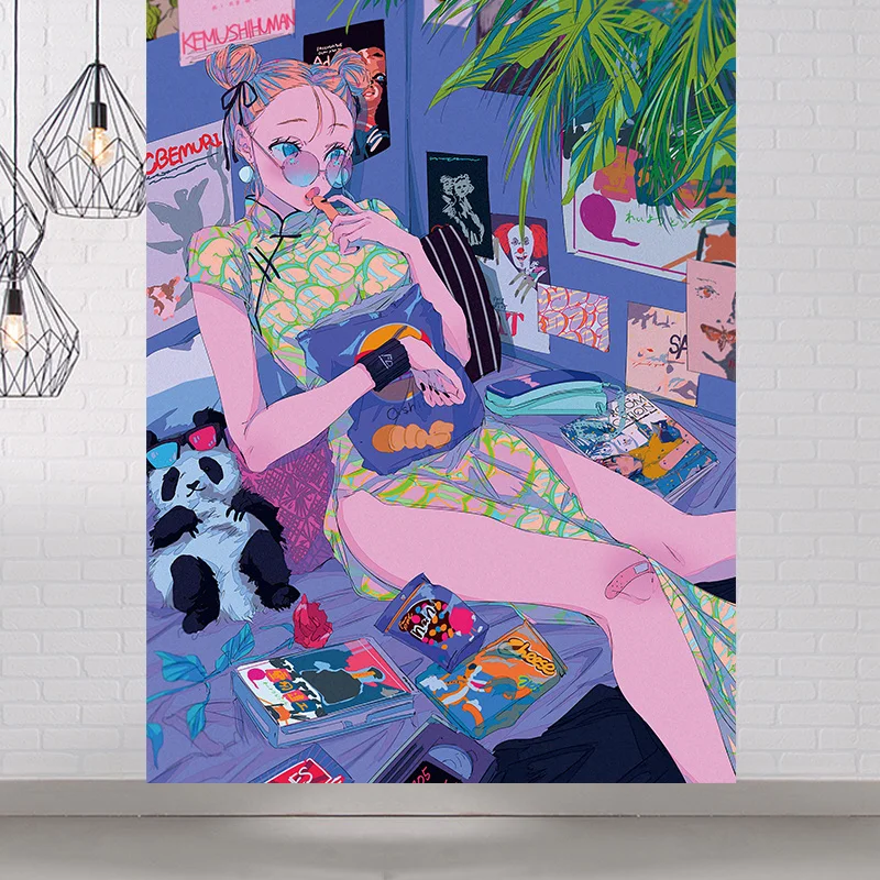 Милый домашний декор, настенный гобелен, аниме стиль, настенный фон...