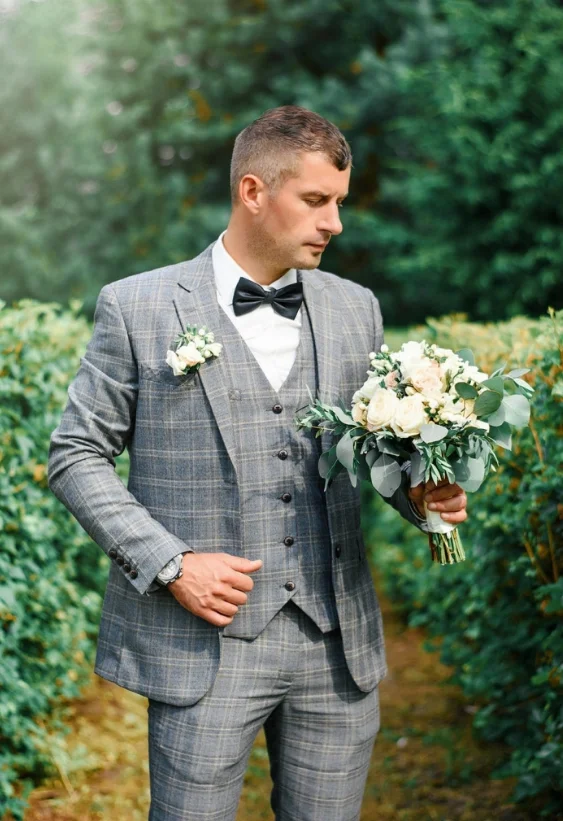Мужской твидовый костюм, приталенный Свадебный костюм из 3 предмето...