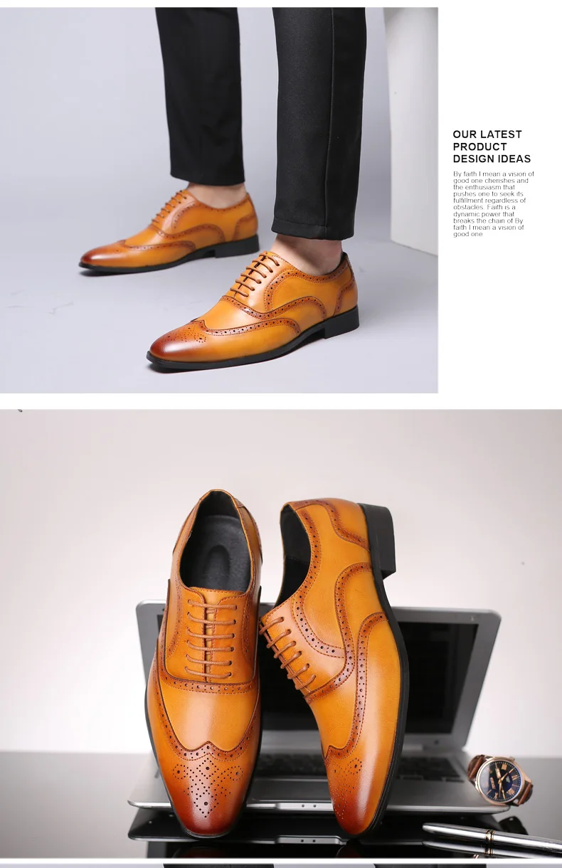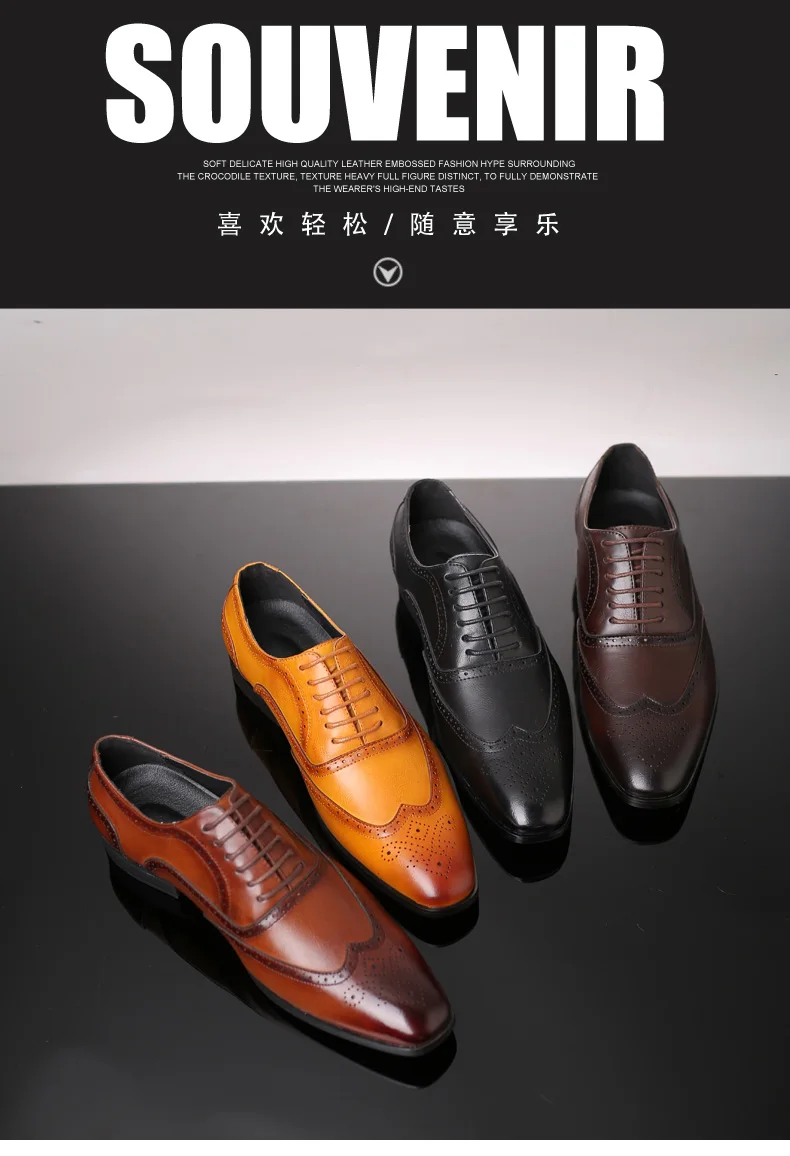 Туфли мужские кожаные деловые, резная обувь для официального костюма джентльмена, роскошные заостренные броги, итальянские мужские классические ботинки