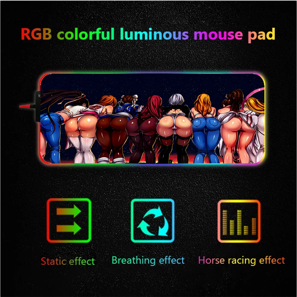 Игровой коврик для мыши с аниме сексуальной девушкой и большой попой, Rgb, размер xxL, большой игровой компьютерный коврик со светодиодный Ной подсветкой, коврик для мыши с клавиатурой, Настольный коврик с USB