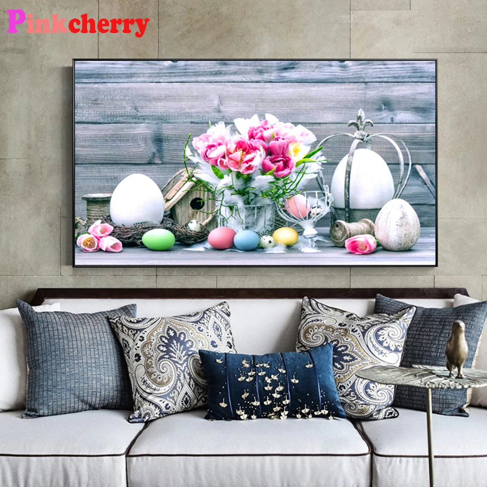Алмазная вышивка с квадратными стразами, полноразмерная круглая 5d картина сделай сам с пасхальными цветами, вышивка крестиком, мозаика