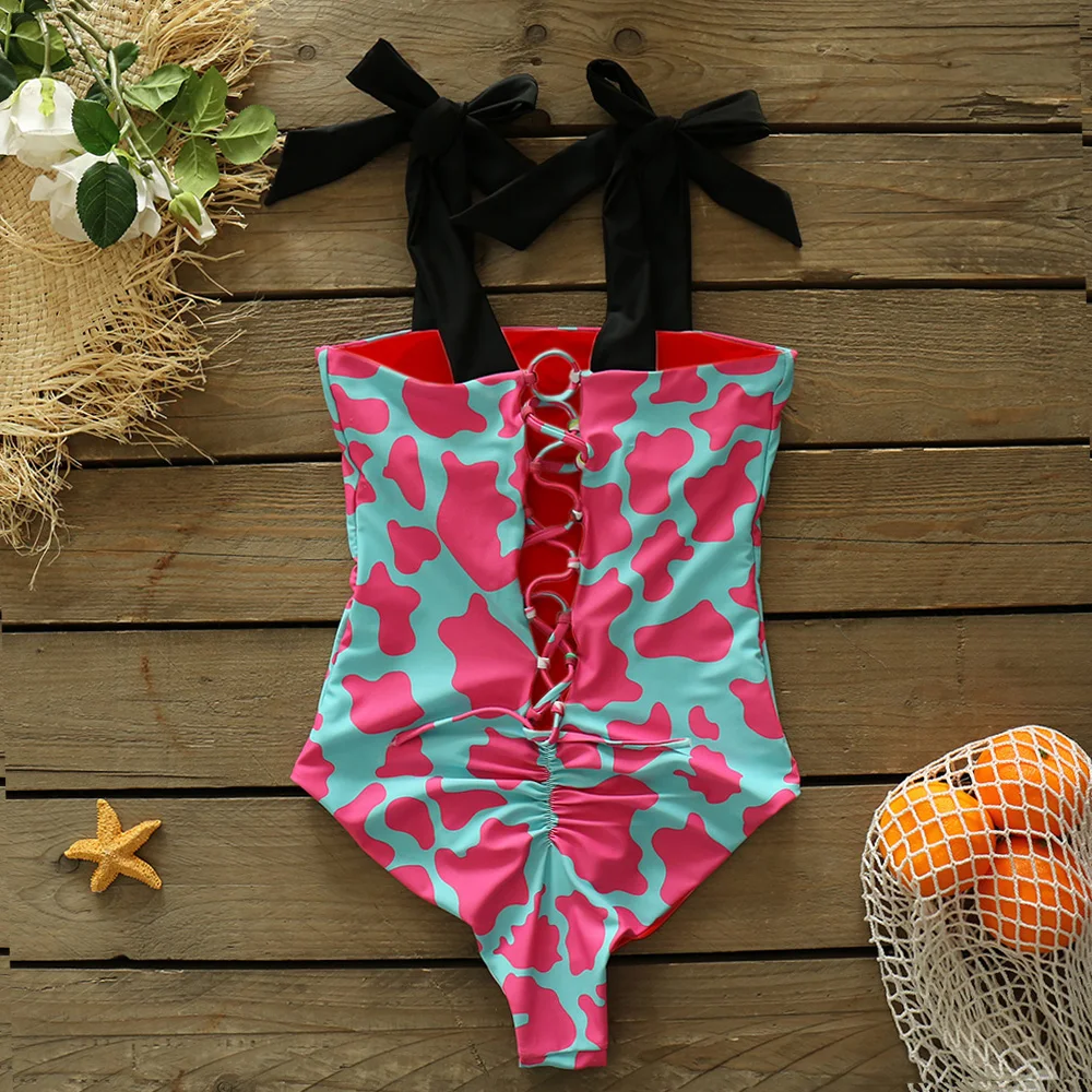 Женский слитный купальник, розовый Леопардовый купальник с пуш-ап, пляжная одежда, монокини, женский купальный костюм, 2021