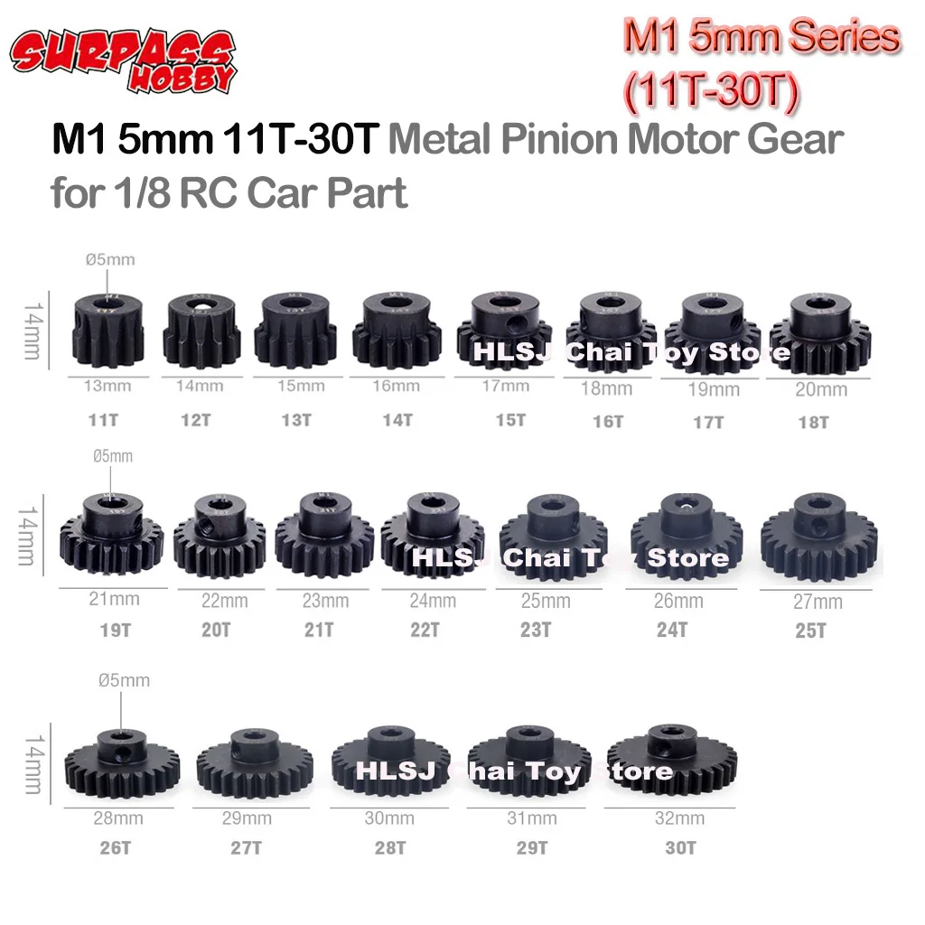 SURPASS HOBBY 1 шт. M1 5 мм 11T 12T 13T 14T-20T 21T-24T 25T-28T 29T 30T Металлическая Шестерня мотора для радиоуправляемого автомобиля 18 двигатель вала 5 мм
