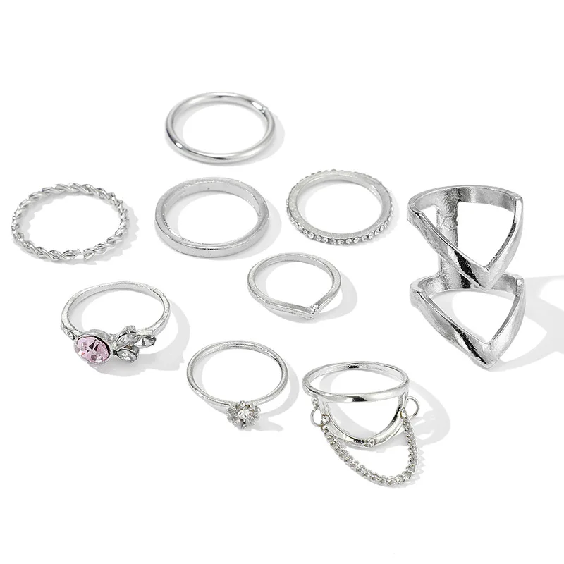 2021 модная одежда в стиле "хип-хоп" Рок в виде геометрических фигур серебро Цвет; Готическая обувь в стиле панк; Набор колец пряжки совместных хвост кольца для женщин ювелирные изделия Аксессуары для пальцев
