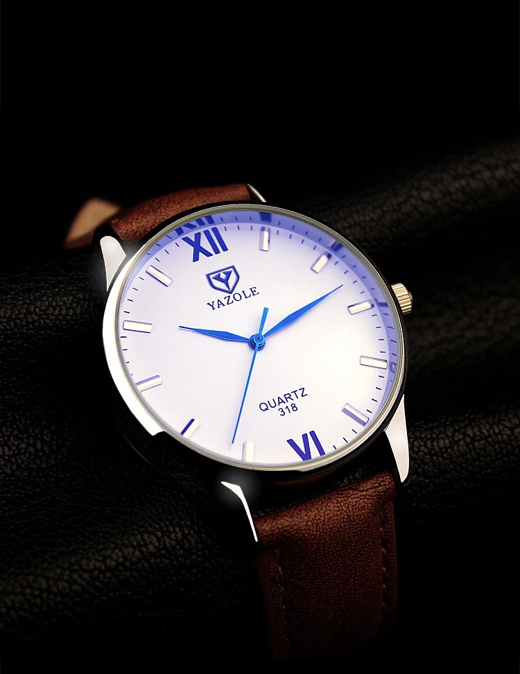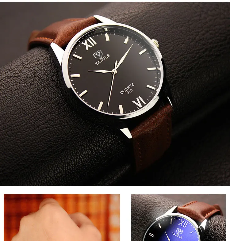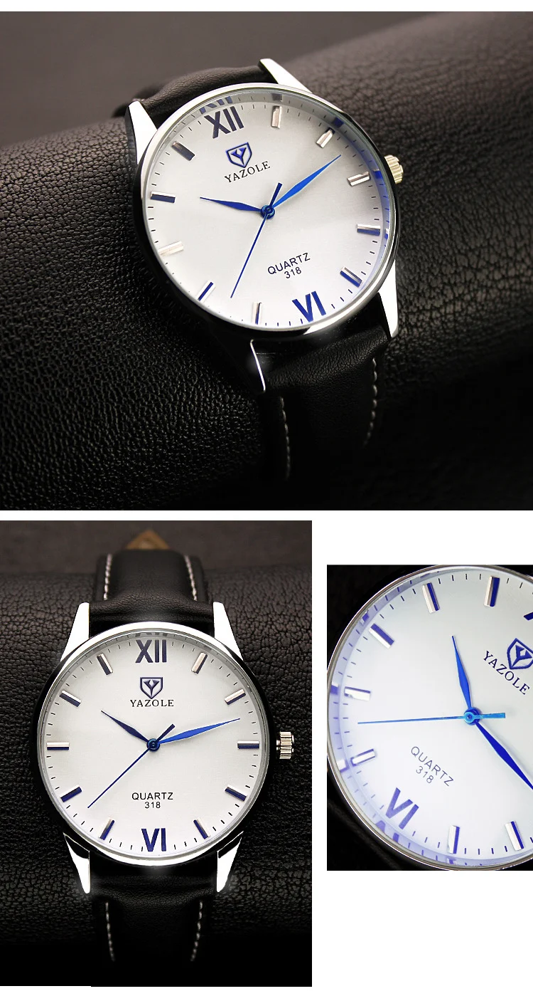 Мужские часы YAZOLE 318 с кожаным ремешком, водонепроницаемые кварцевые часы для мужчин, модные повседневные мужские часы, наручные часы Лидер продаж # Reloj Hombre