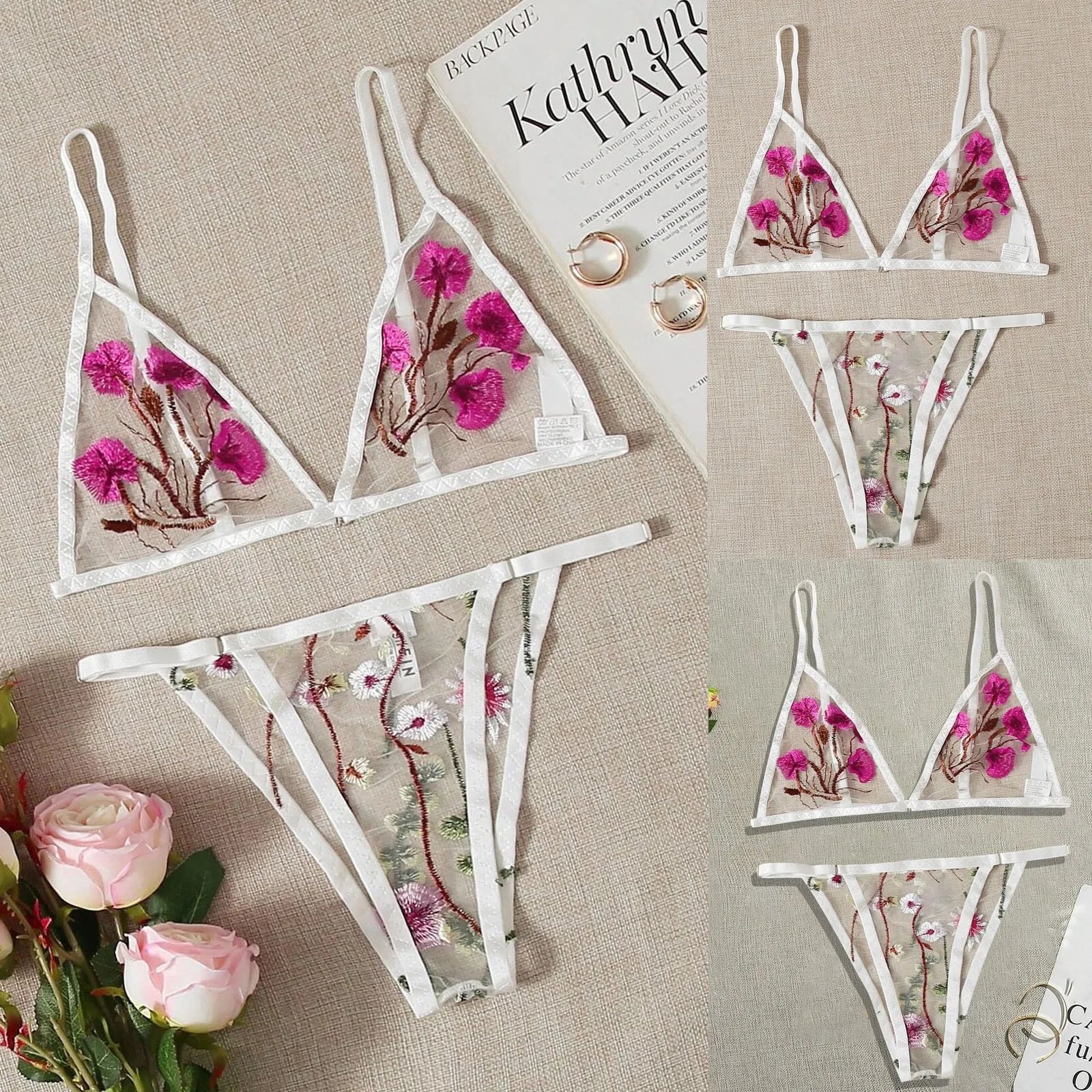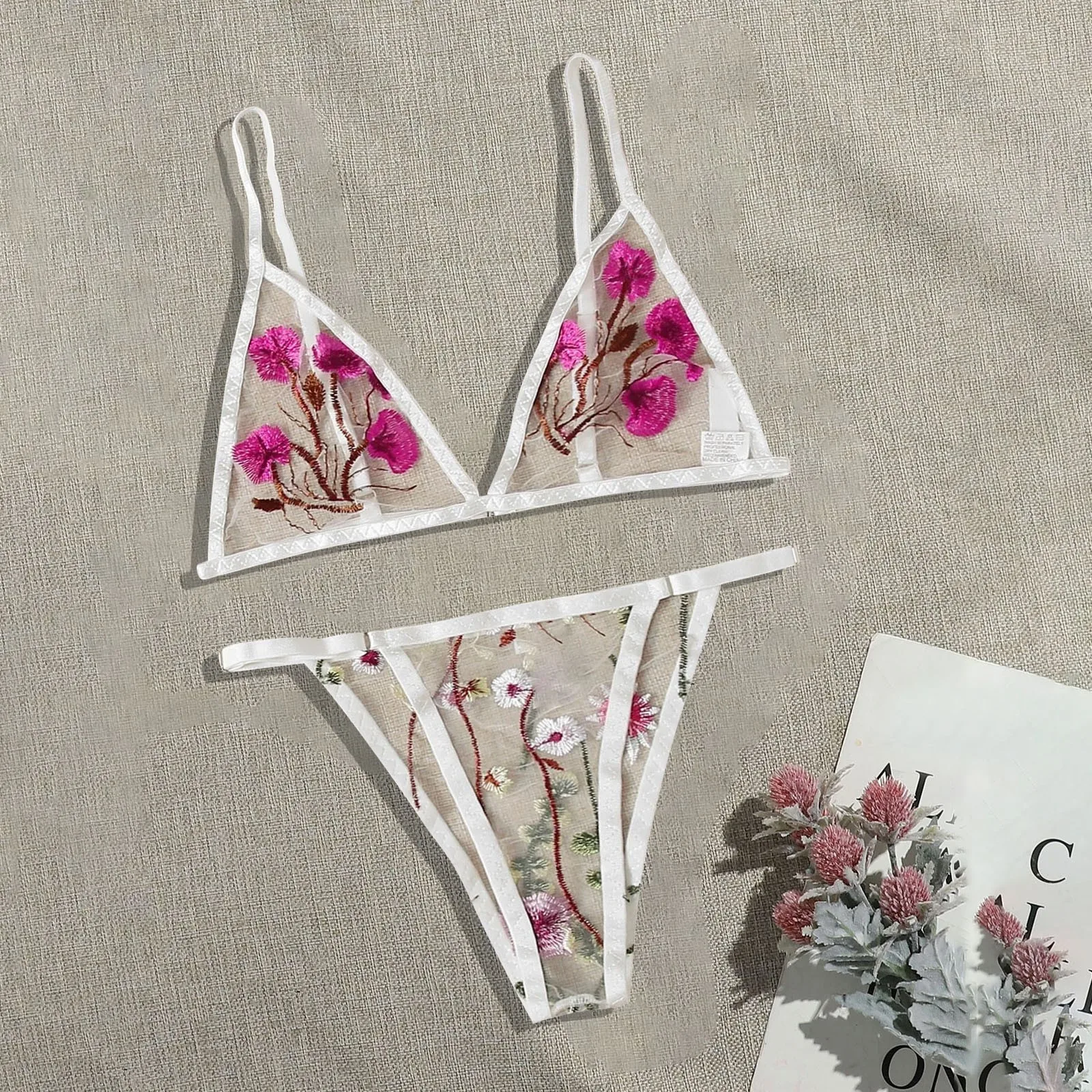 Бюстгальтер новые сексуальные модные стринги пижамы Нижнее белье цветочные кружева