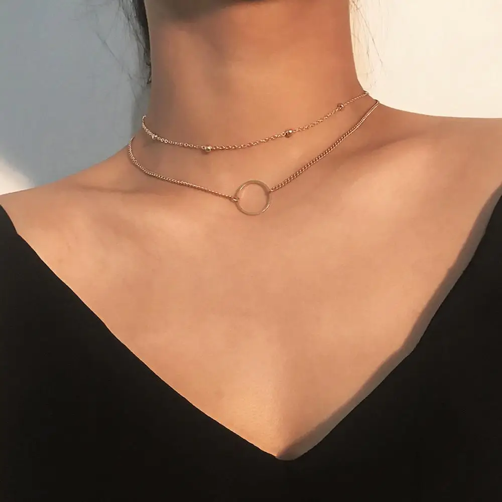 Модное геометрическое ожерелье из медных бусин, многослойное женское золотое круглое ожерелье с подвеской, трендовые ювелирные изделия из шоколада