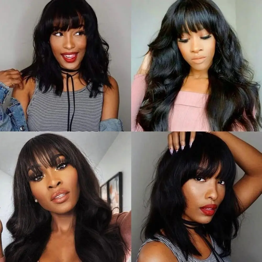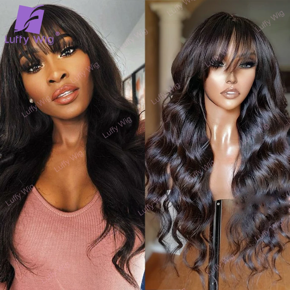 Волнистые человеческие волосы, парики с челкой, бразильские волосы Remy, волосы на волосистой части головы, парик без клея, 200% плотность, парик для черных женщин, ЛуффиЦвет волос: натуральный цвет по умолчаниюПлотность волос: 150% 180% 200%Размер шапки: средний по умолчаниюЦвет крышки: Средний коричневый по умолчанию