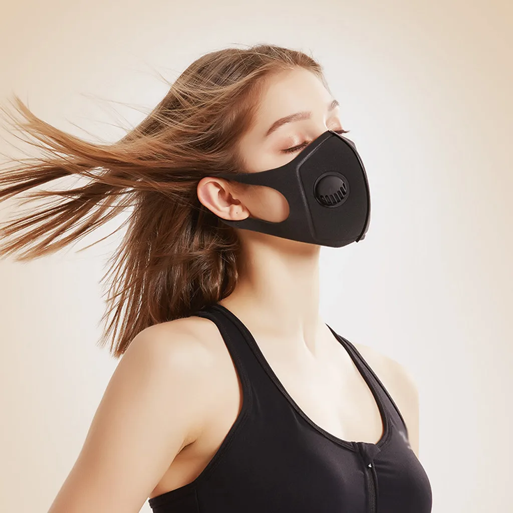 Маска рта многоразовая PM2.5 дышащая с принтом, тканевая Защитная, с клапаном, моющаяся, для защиты от пыли, черная, 6 шт.