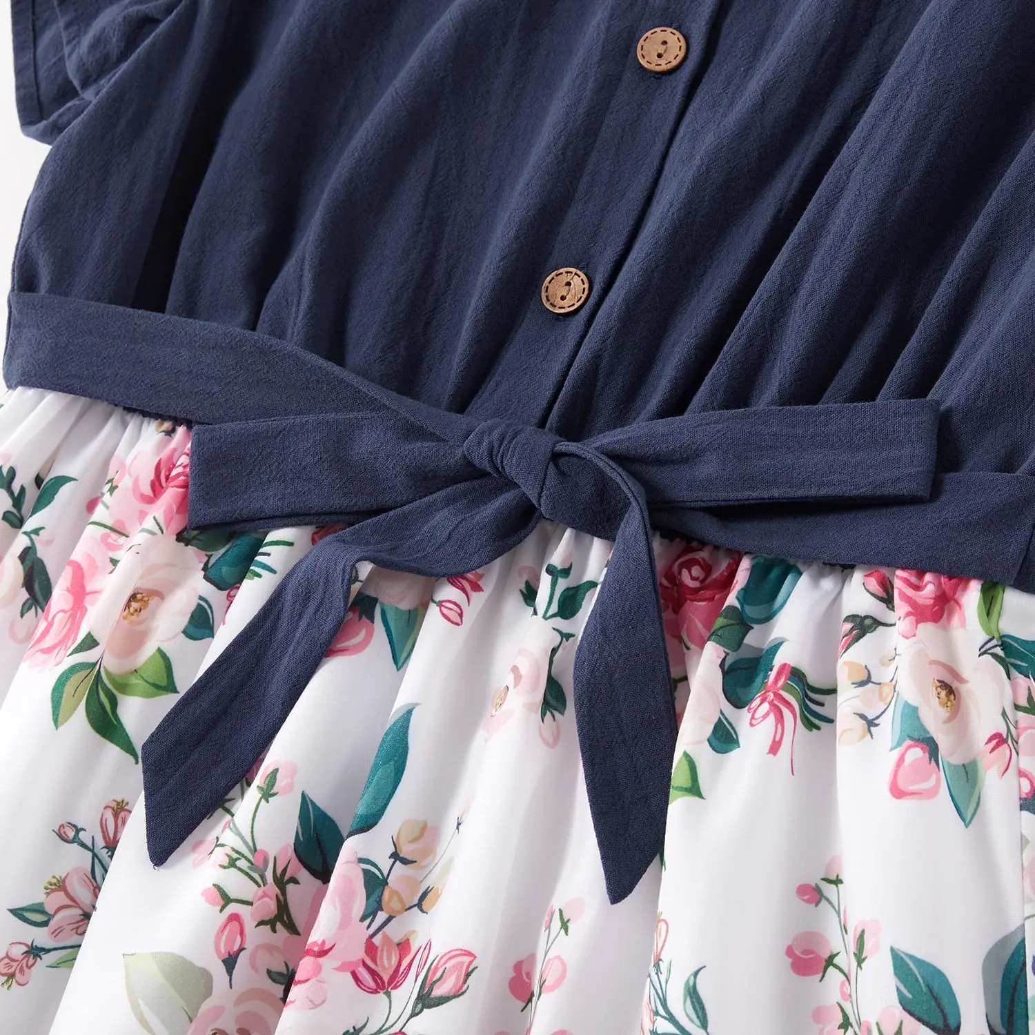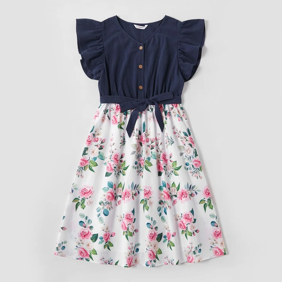 Летнее Хлопковое платье-комбинезон для мамы и девочки, с цветочным принтом