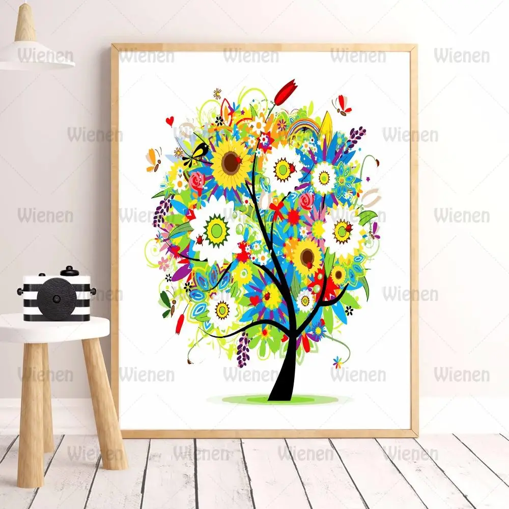 Холст Картина написанная акварелью Красочные Дерево Искусство Постеры печати на холсте настенные картины для Декор в гостиную дома декоративные картина без рамки