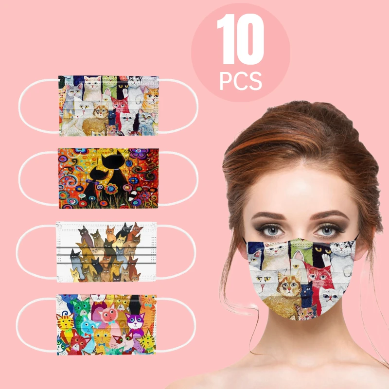 10 шт для взрослых с цветочным принтом Кот рисунком из мультфильма трехслойная одноразовая маска Mascarillas Рождество Mascherine маска jetables Косплэй