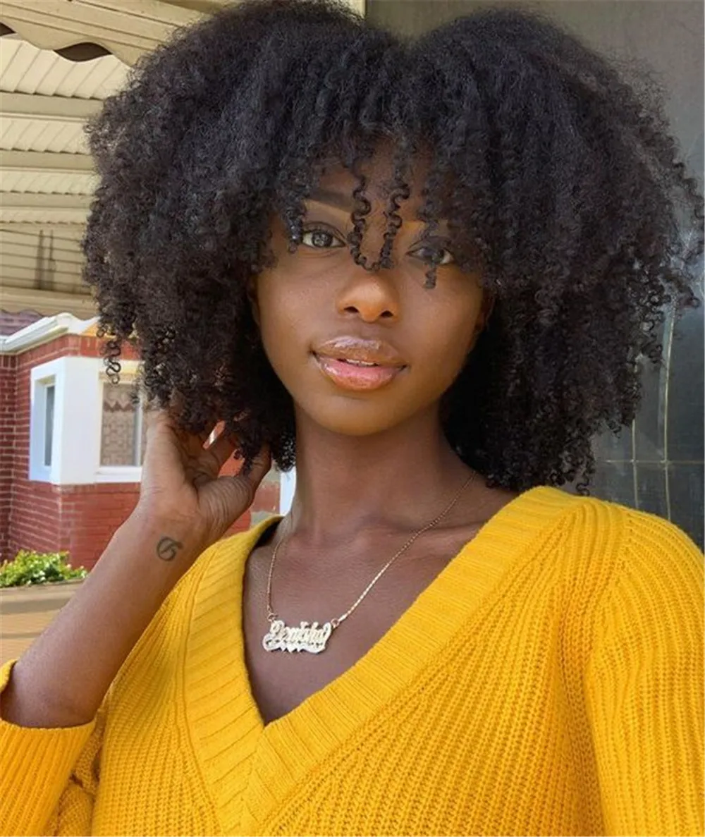Парики из натуральных кудрявых волос Jerry с челкой для чернокожих ...