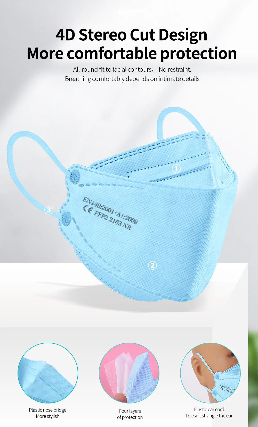 3d-маска для рыбы CE ffp2mask, 4-слойная респираторная маска FFP2 д...
